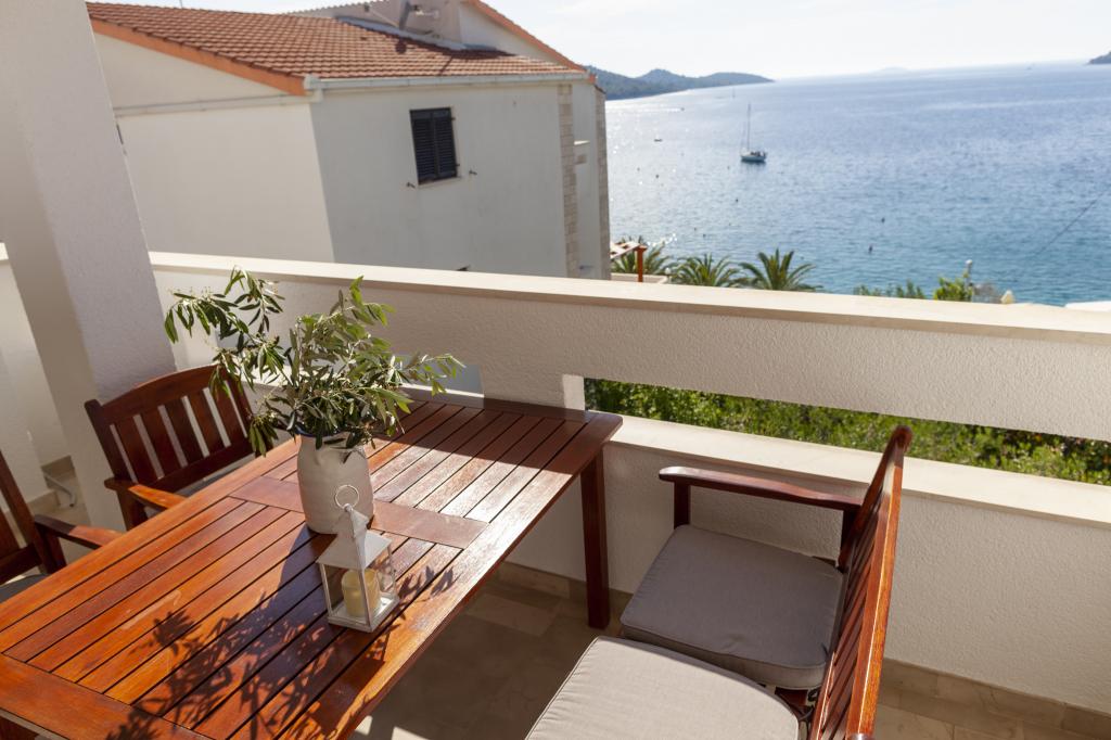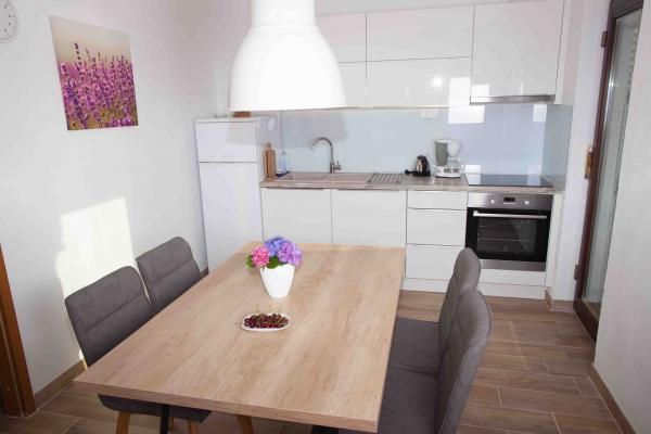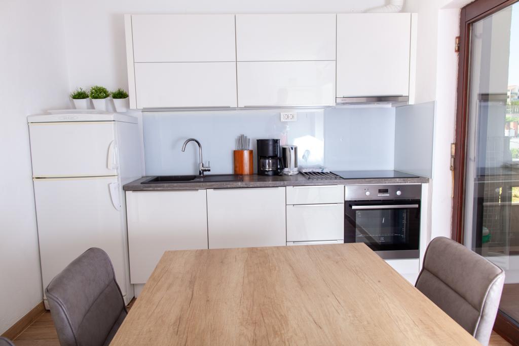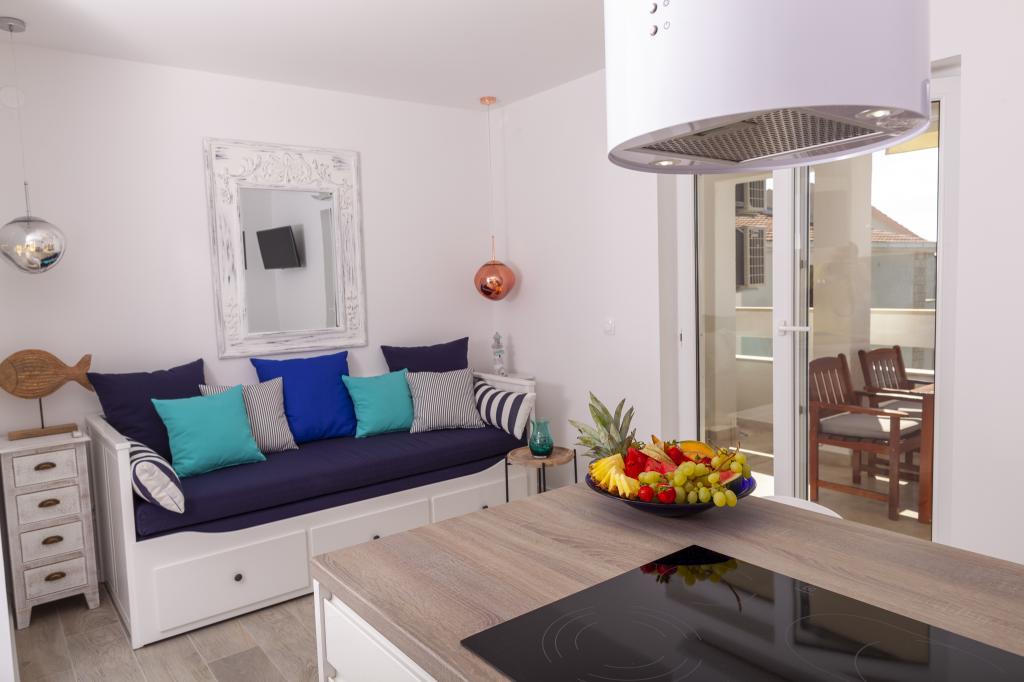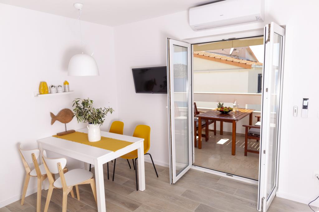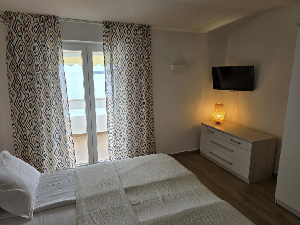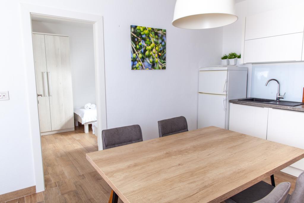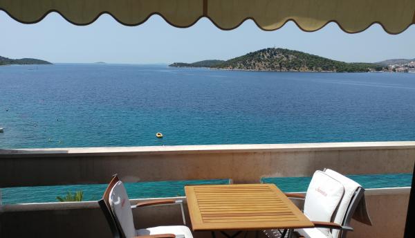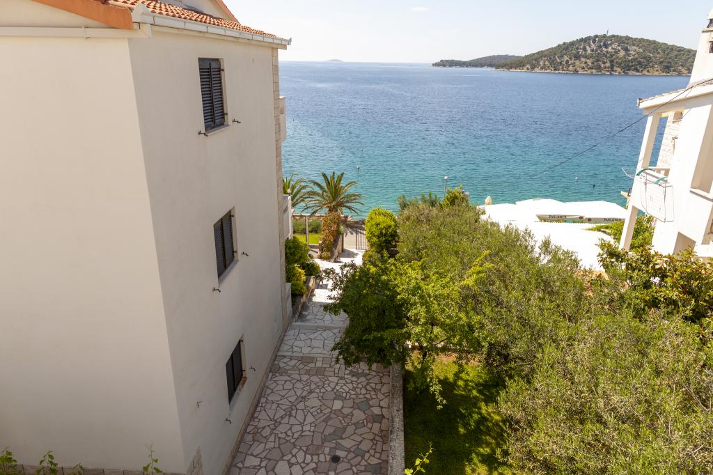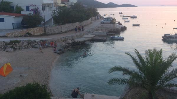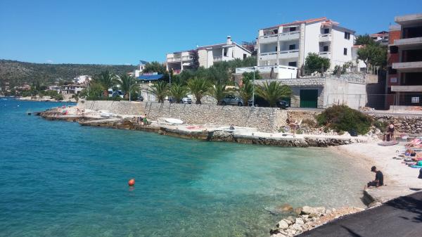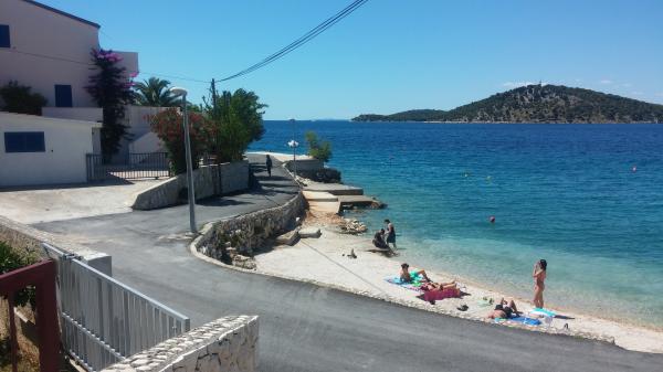 Apartmany se nachazeji v první řadě od moře cize doslova projdete po schodech a jste na plazi. Hned při apartmanu je obchod nad nim restaurace. Apartman se nachazi v klidne oblasti takze ma plazi se vzdy najde místo. Je zde i strk pro děti. Domaci lidé jsou velmi přátelsky. I proto sem chodíme každý rok po dobu 15 let.