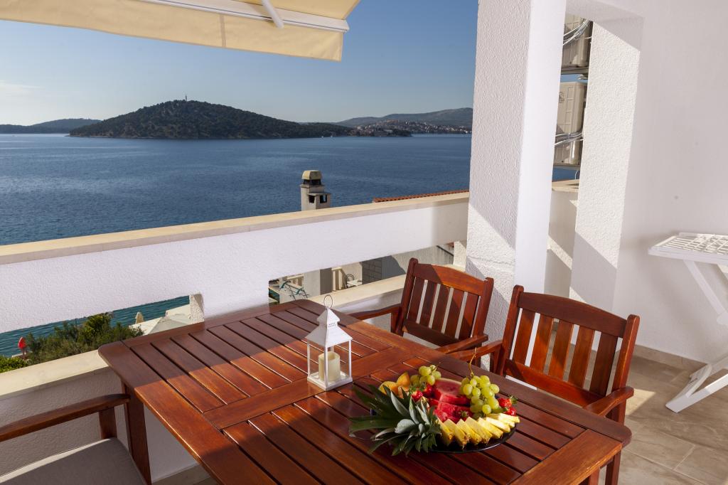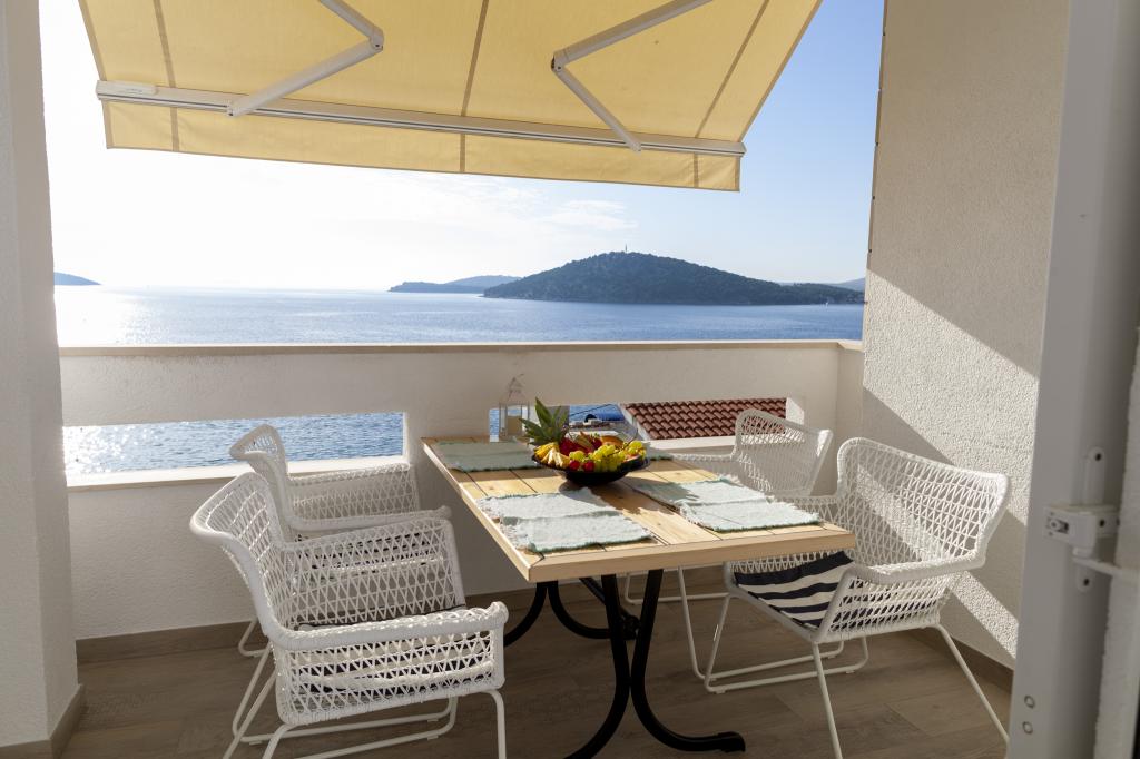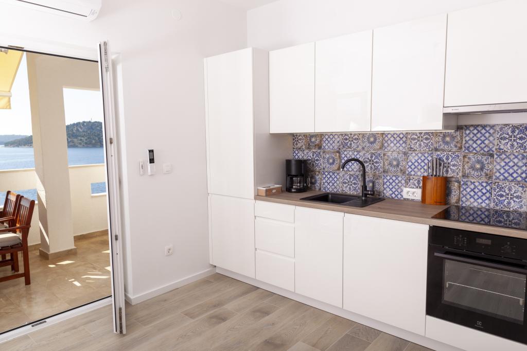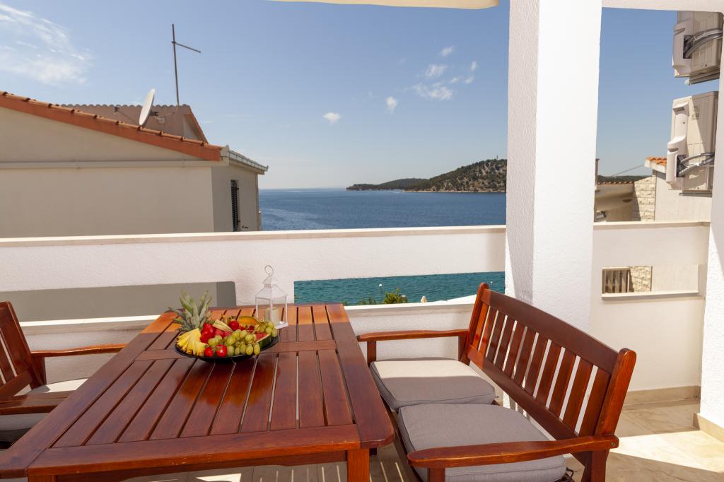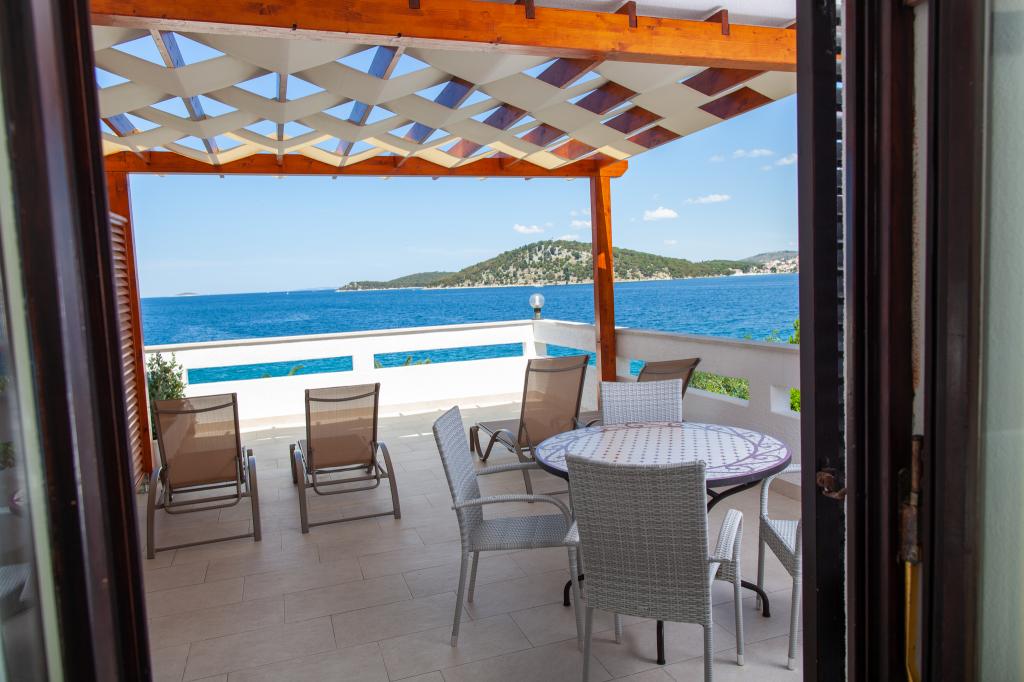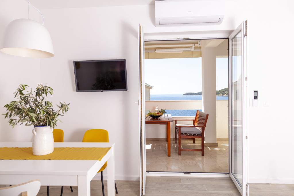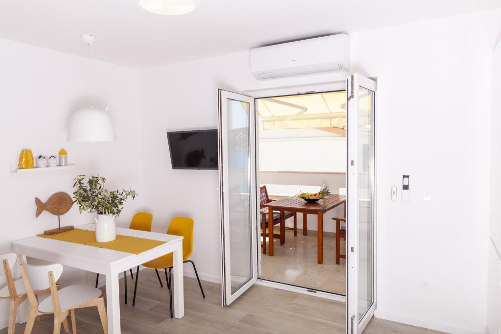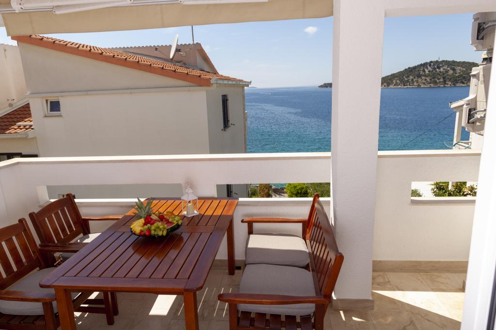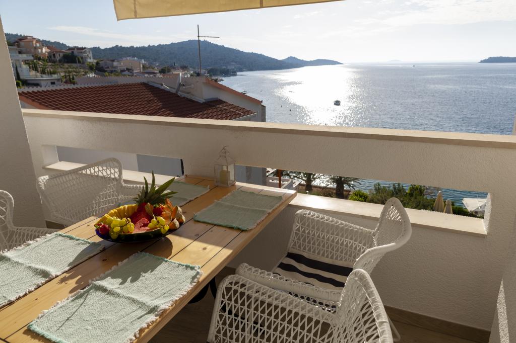 Apartmany se nachazeji v první řadě od moře cize doslova projdete po schodech a jste na plazi. Hned při apartmanu je obchod nad nim restaurace. Apartman se nachazi v klidne oblasti takze ma plazi se vzdy najde místo. Je zde i strk pro děti. Domaci lidé jsou velmi přátelsky. I proto sem chodíme každý rok po dobu 15 let.