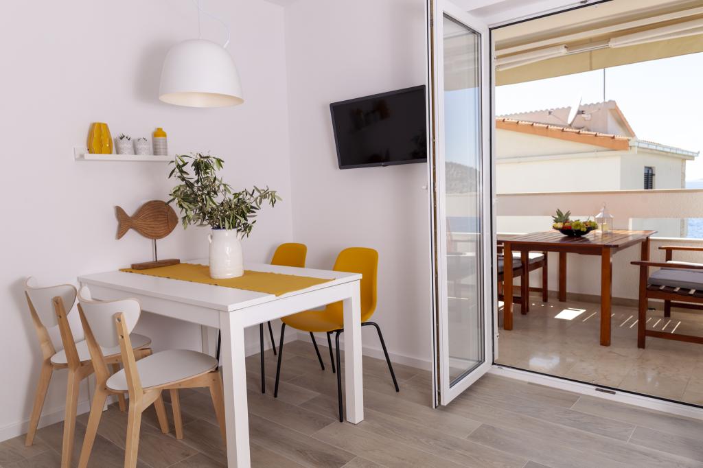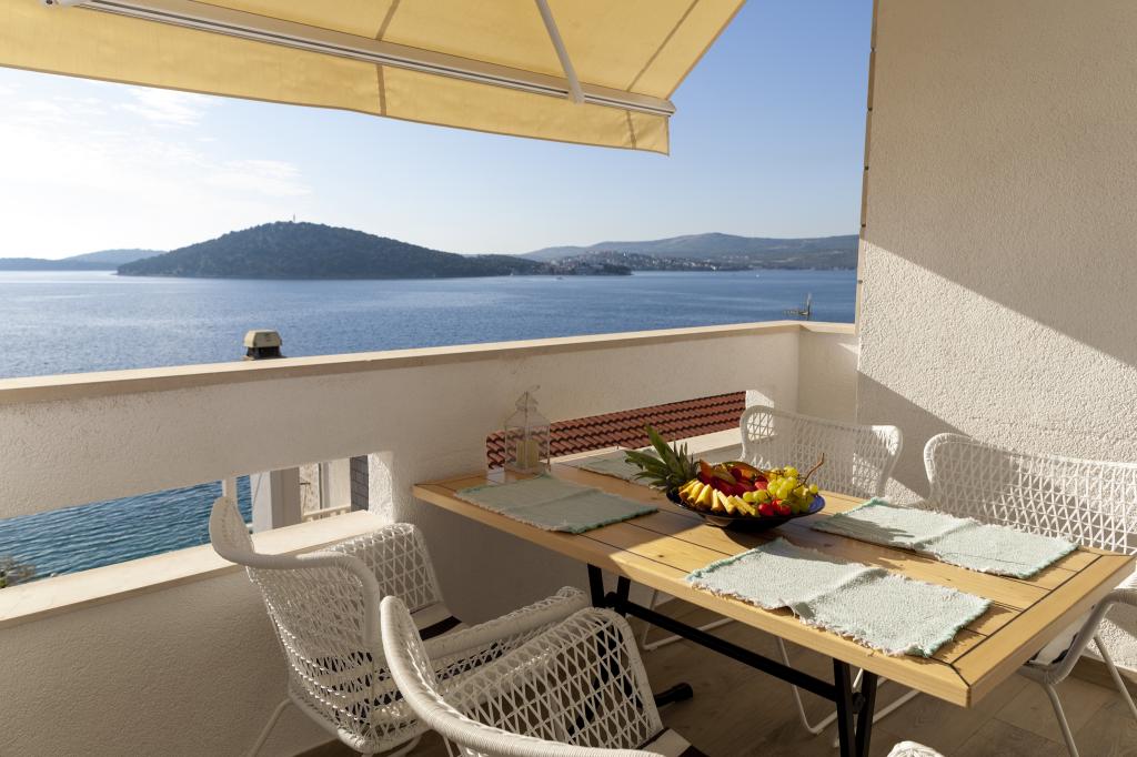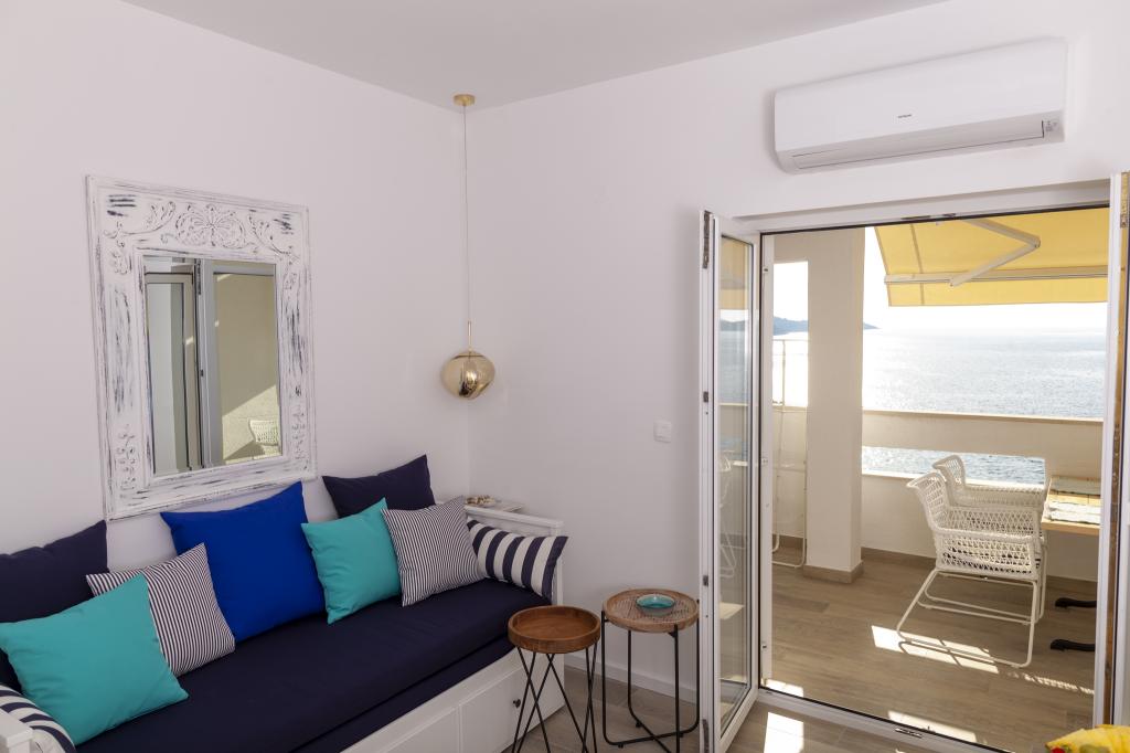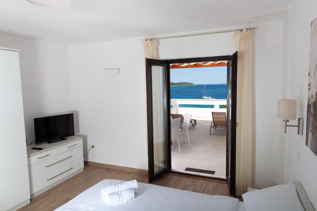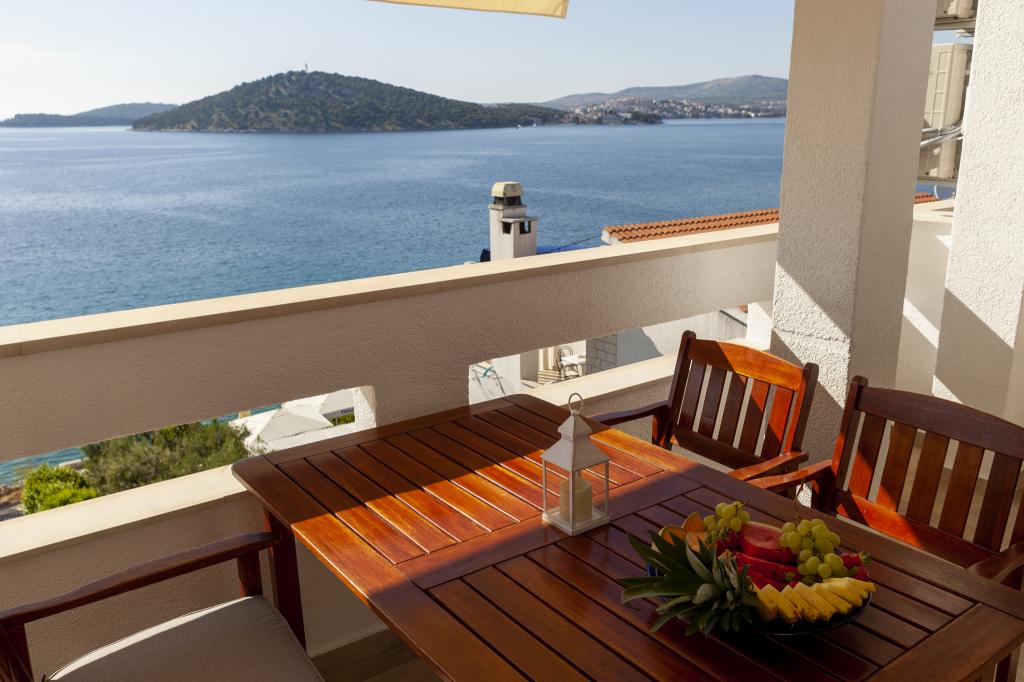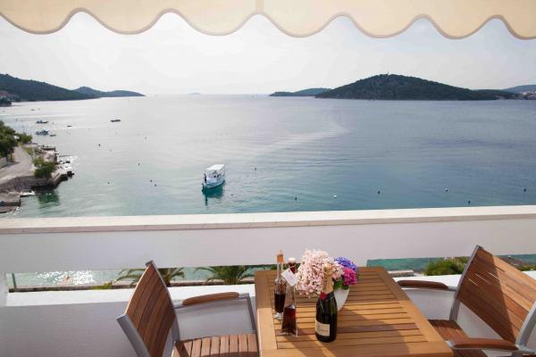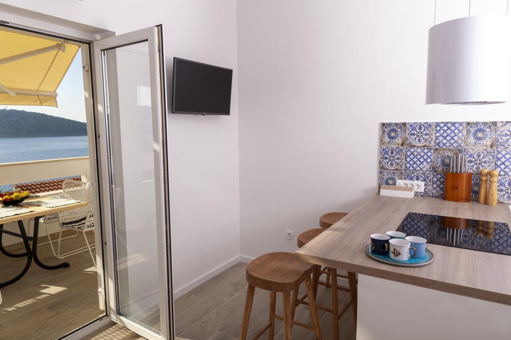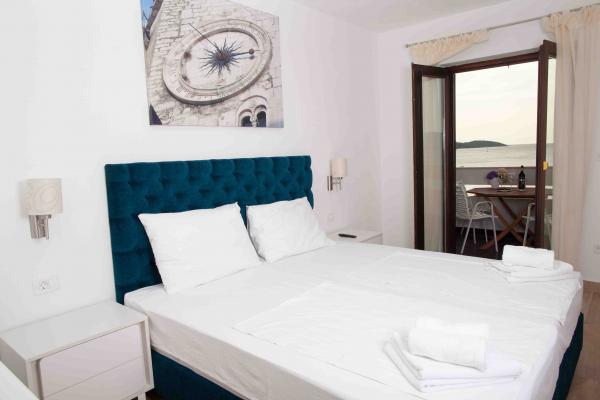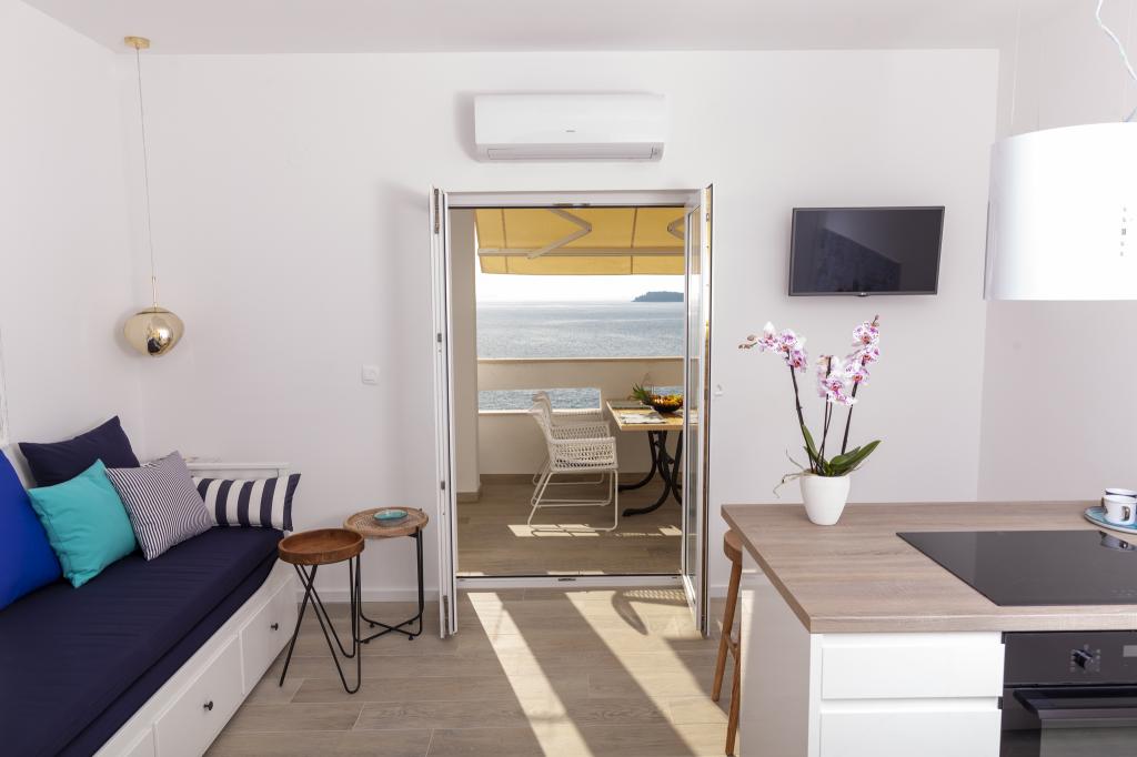 Apartmany se nachazeji v první řadě od moře cize doslova projdete po schodech a jste na plazi. Hned při apartmanu je obchod nad nim restaurace. Apartman se nachazi v klidne oblasti takze ma plazi se vzdy najde místo. Je zde i strk pro děti. Domaci lidé jsou velmi přátelsky. I proto sem chodíme každý rok po dobu 15 let.