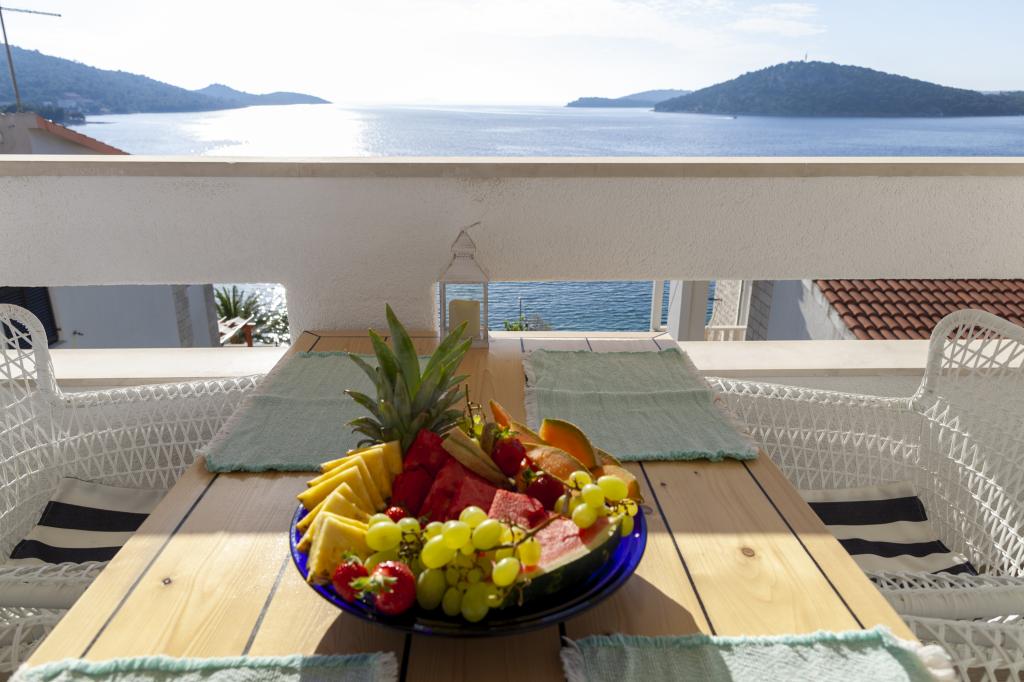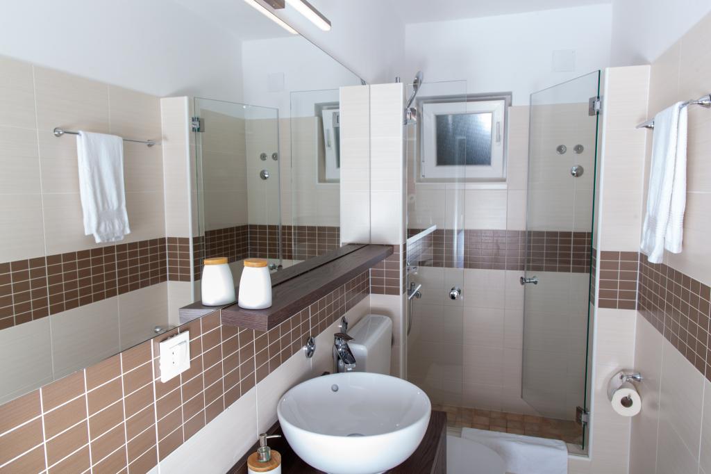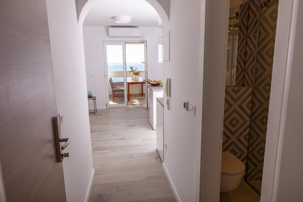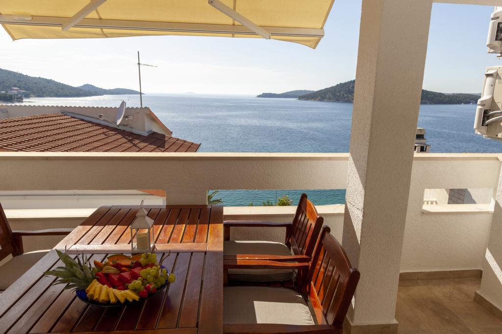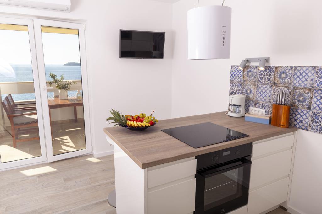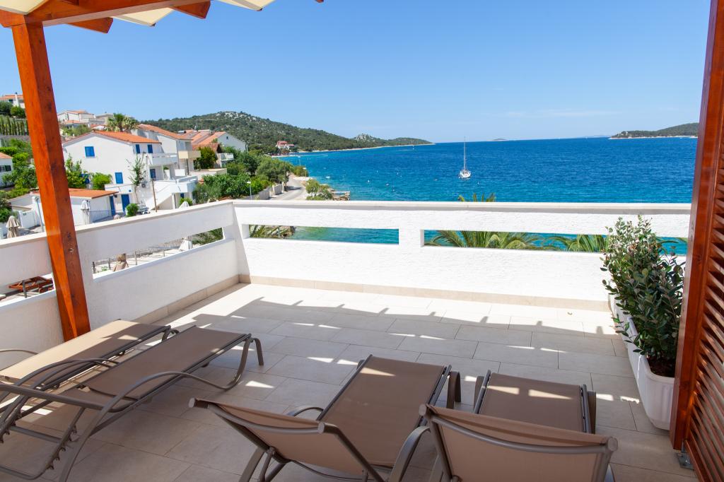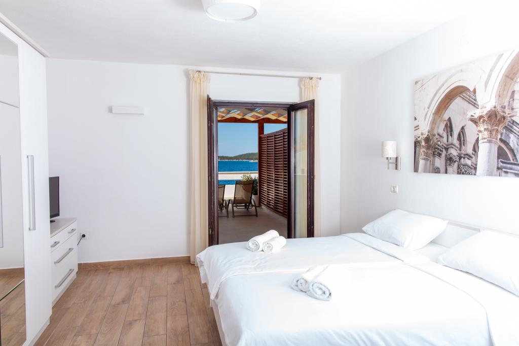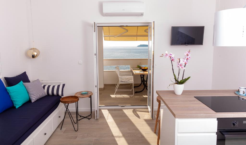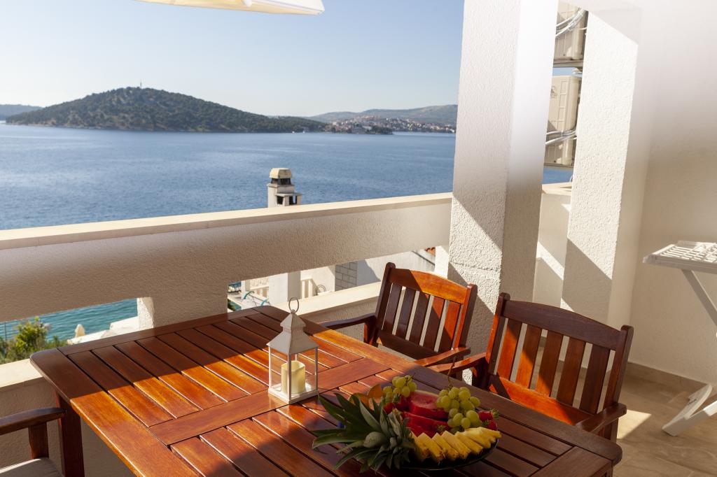 Apartmany se nachazeji v první řadě od moře cize doslova projdete po schodech a jste na plazi. Hned při apartmanu je obchod nad nim restaurace. Apartman se nachazi v klidne oblasti takze ma plazi se vzdy najde místo. Je zde i strk pro děti. Domaci lidé jsou velmi přátelsky. I proto sem chodíme každý rok po dobu 15 let.