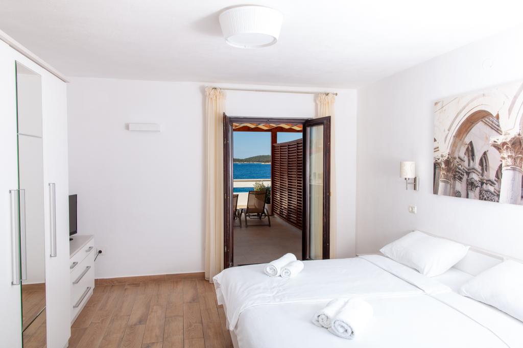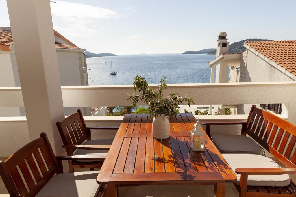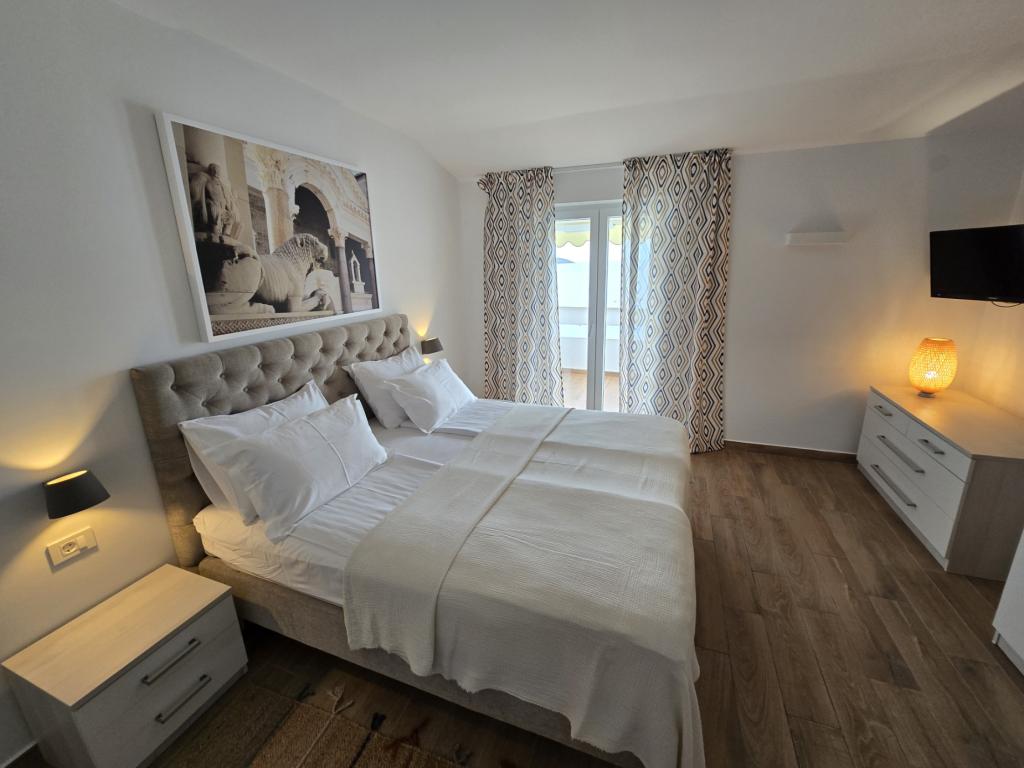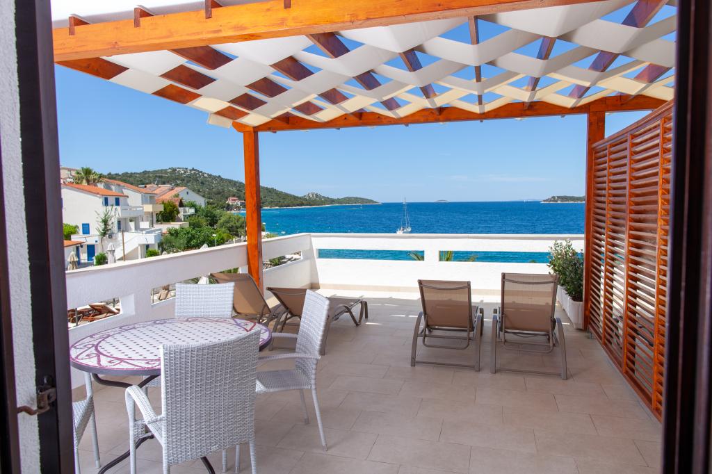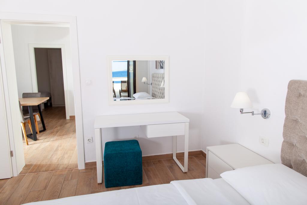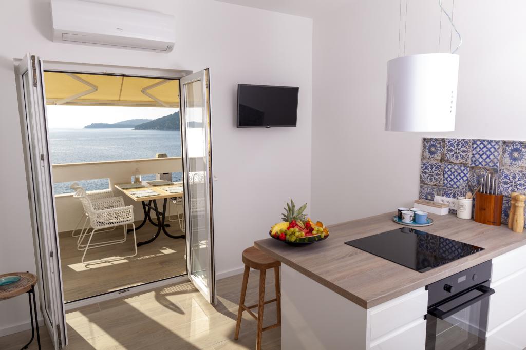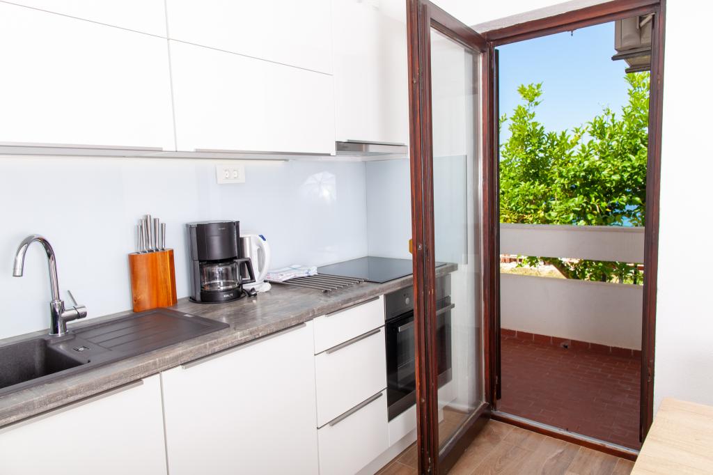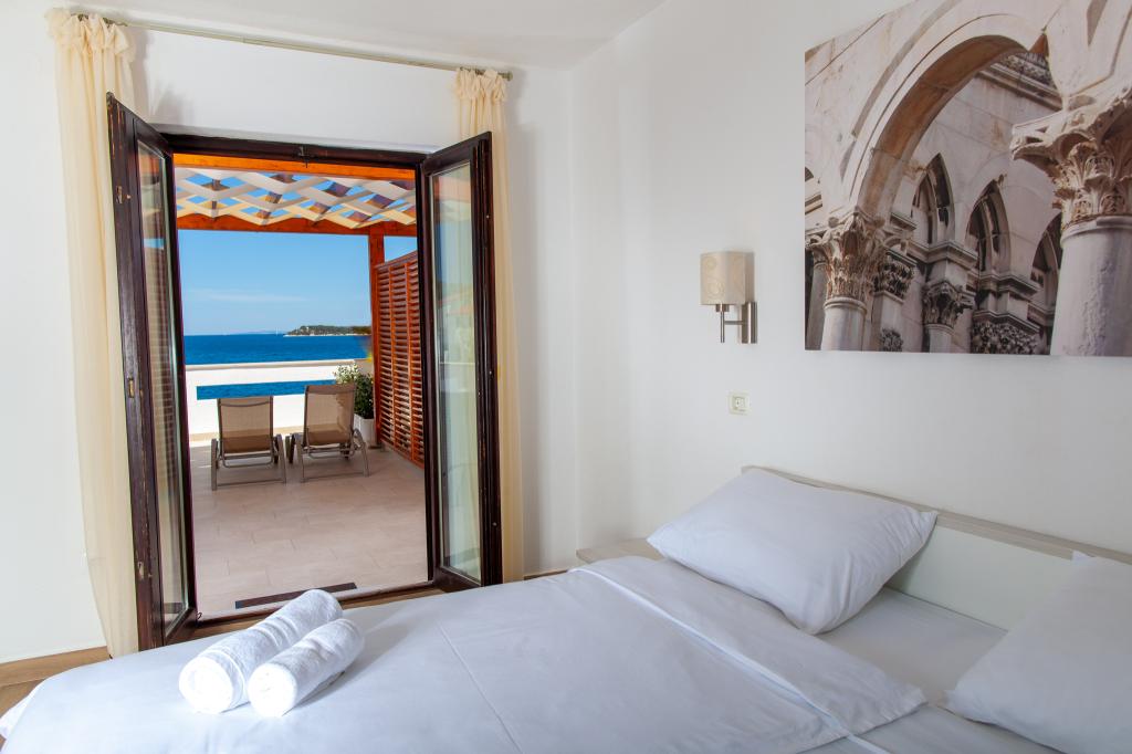 Apartmany se nachazeji v první řadě od moře cize doslova projdete po schodech a jste na plazi. Hned při apartmanu je obchod nad nim restaurace. Apartman se nachazi v klidne oblasti takze ma plazi se vzdy najde místo. Je zde i strk pro děti. Domaci lidé jsou velmi přátelsky. I proto sem chodíme každý rok po dobu 15 let.
