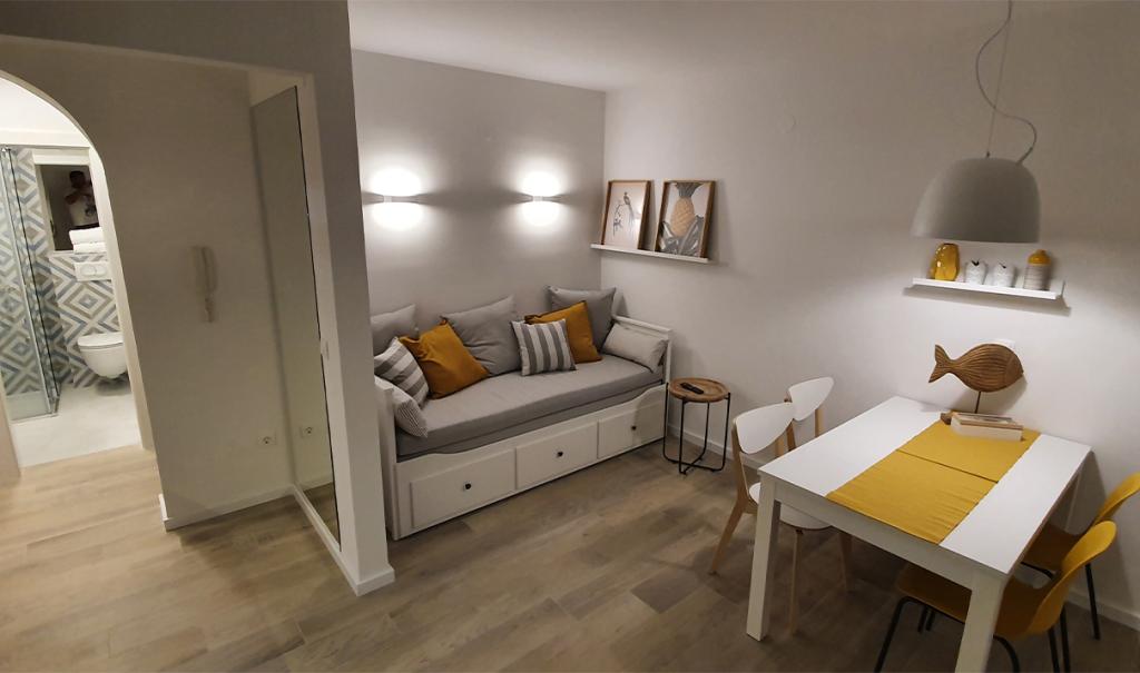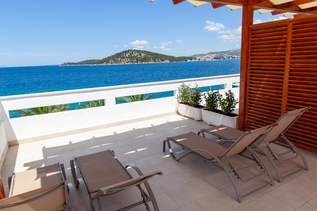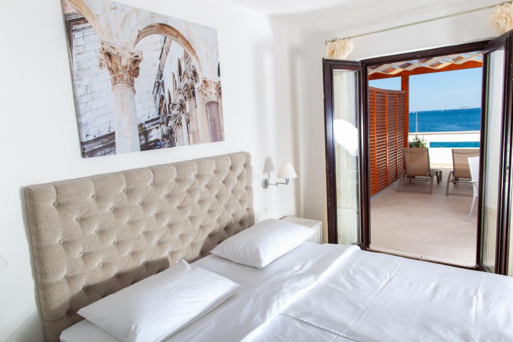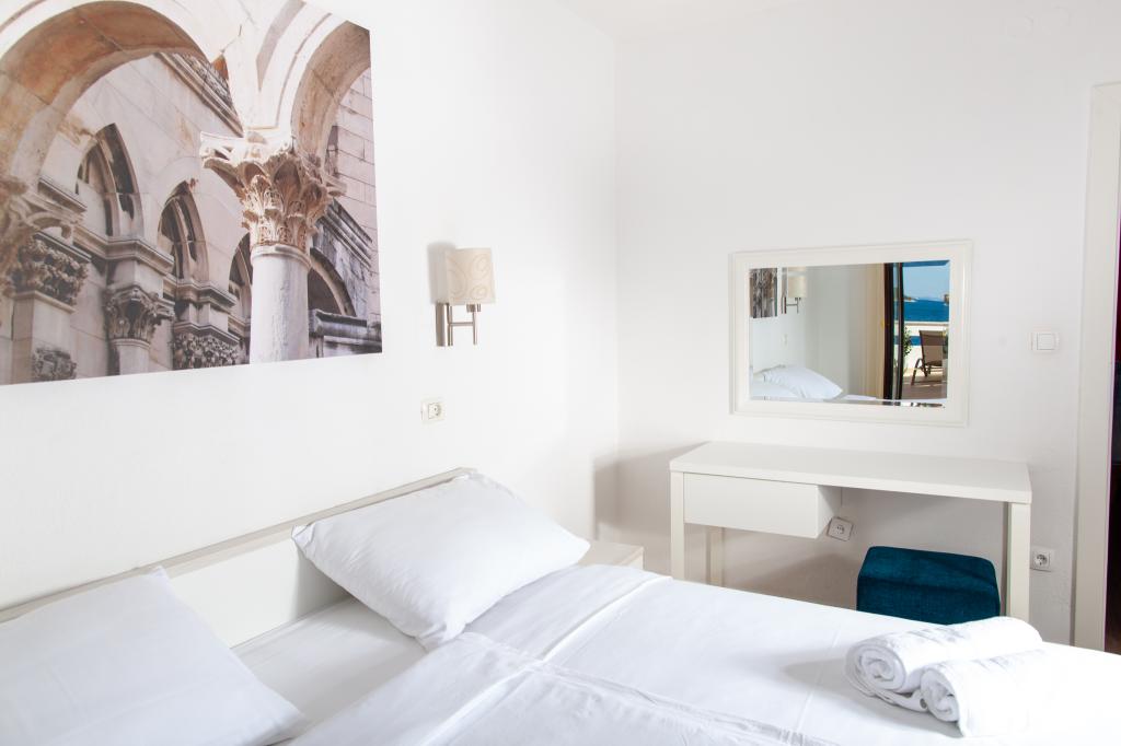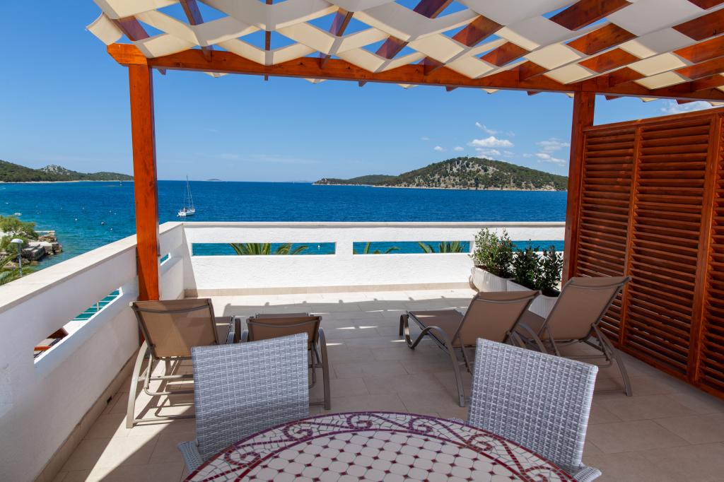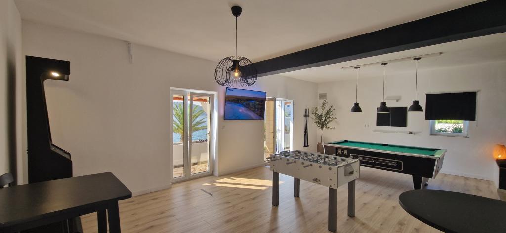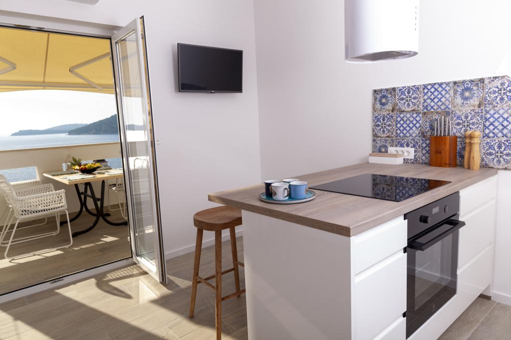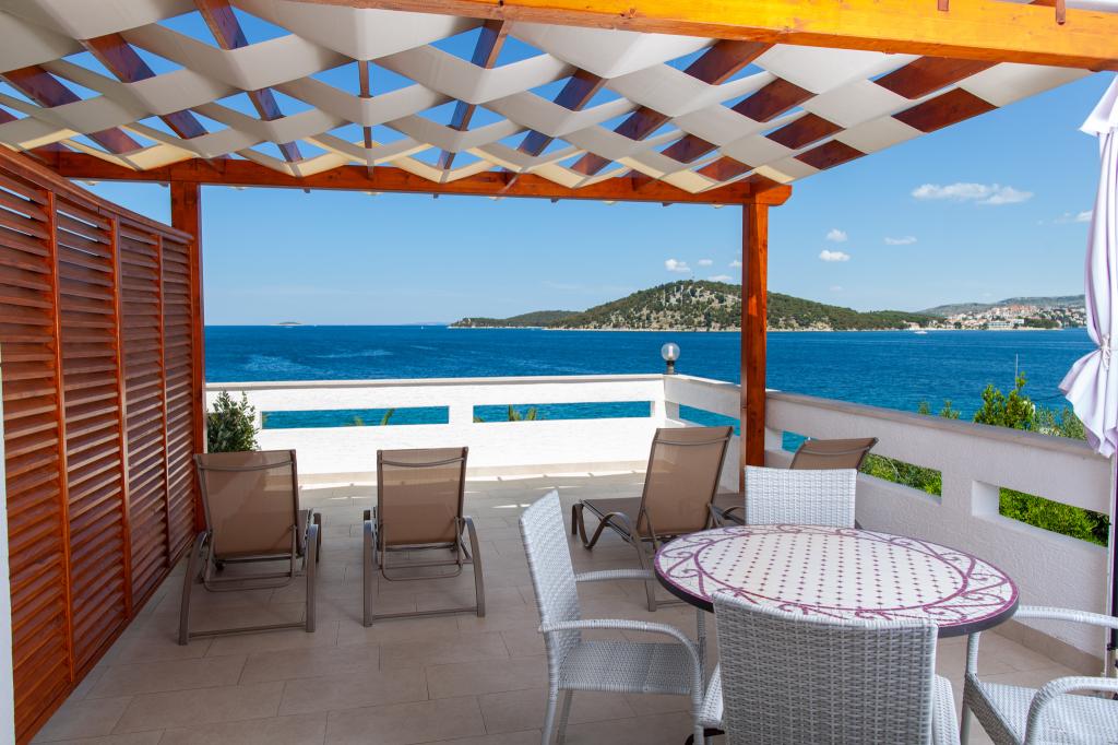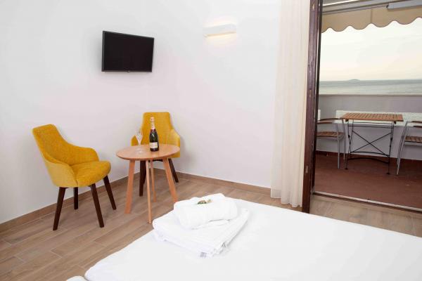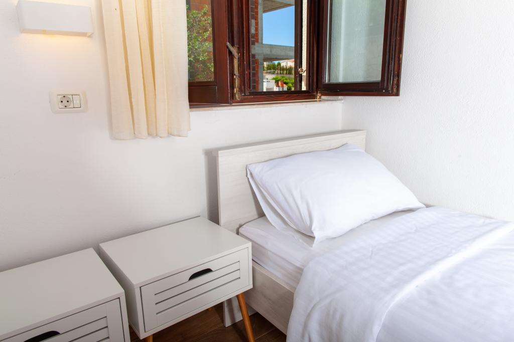 Apartmany se nachazeji v první řadě od moře cize doslova projdete po schodech a jste na plazi. Hned při apartmanu je obchod nad nim restaurace. Apartman se nachazi v klidne oblasti takze ma plazi se vzdy najde místo. Je zde i strk pro děti. Domaci lidé jsou velmi přátelsky. I proto sem chodíme každý rok po dobu 15 let.