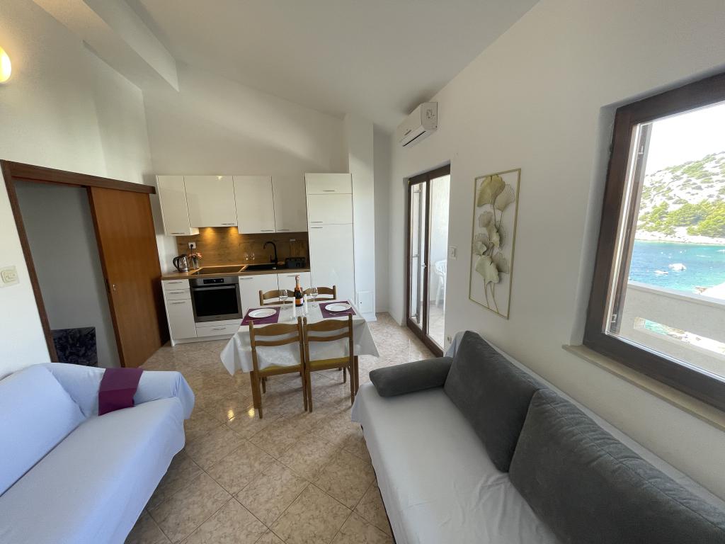 Pobyt v apartmánu byl vždy příjemný, majitelé jsou velmi milí a laskaví. Pokoje jsou čisté a vybavené. Nádherný výhled na moře, klidné okolí. Vstup do moře je komfortní, kvůli dostatečné hloubce nehrozí popíchání ježky. V dojezdové vzdálenosti se nachází kamínkové pláže, které si určitě užijí vaše děti. V centru obce se nachází kulturní zázemí - restaurace a obchod, který má dostatečný sortiment. Nezapomenutelná je plavba parníkem do Rogoznice. Doporučujeme výšlap na blízký kopec kvůli jedinečnému výhledu. Parkování přímo u apartmánu.
