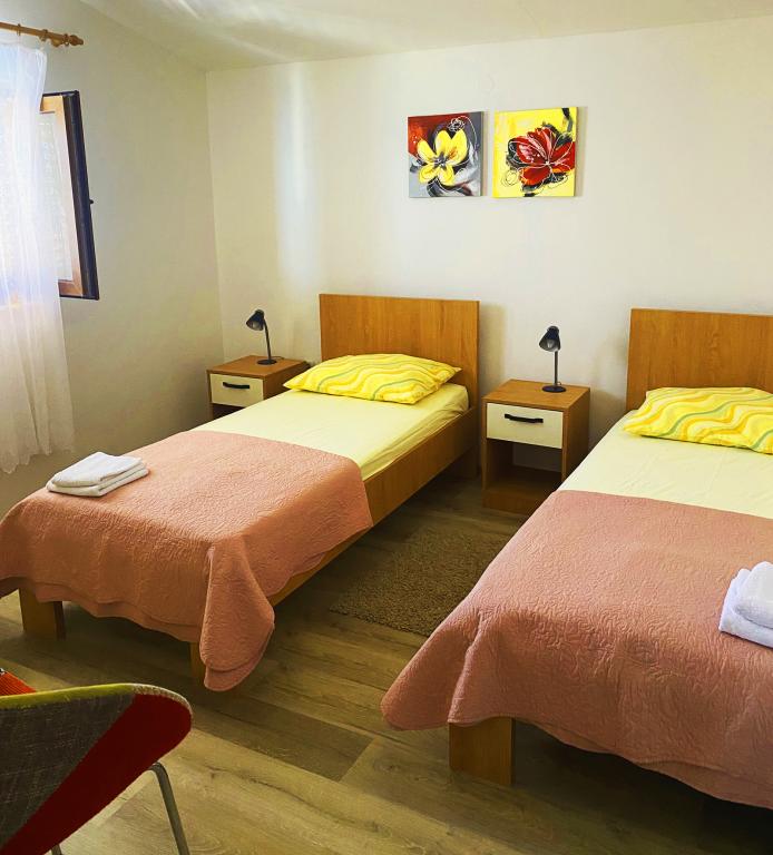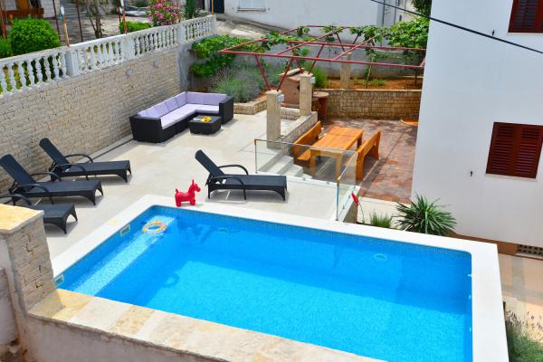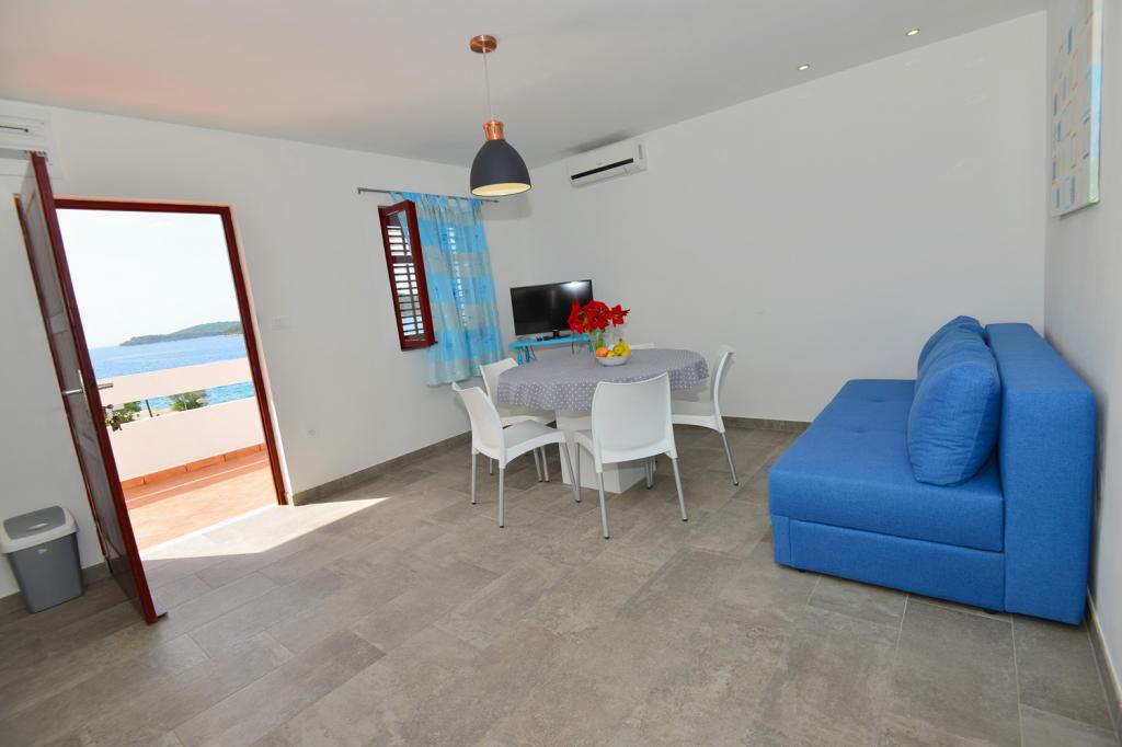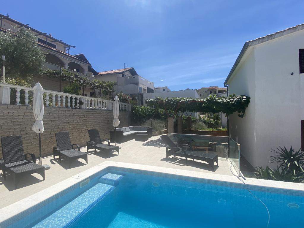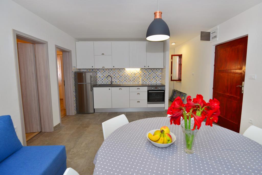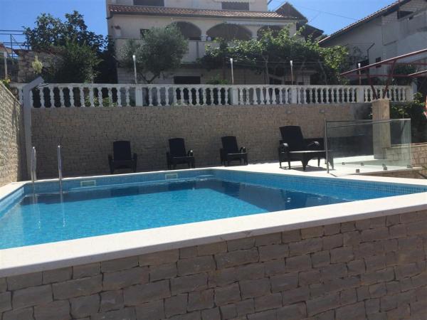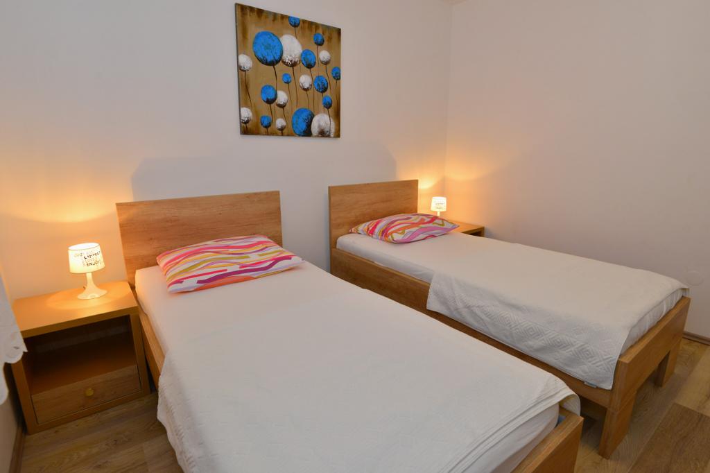 Apartmány jsou velmi pohodlné a jsou umístěny v domě u moře. Těsně nad malou pláží. Pláž je písčitá a je ideální pro rodiny s dětmi. Hosté, kteří chtějí více intimní pobyt u moře se mohou rozhodnout pro stijenovite části pobřeží, které může být dosaženo v krátké procházce. Apartmány se skládají ze dvou prostorných ložnic, koupelna, kuchyň a velký obývací pokoj. Každý apartmán má terasu se stolem a židlemi. Naši hosté vychutnat ranní kávu na terase, která nabízí fantastický výhled na moře a moře. Vedle domu je bazén sdílená hosty ubytované v našich dvou apartmánech. Vedle bazénu je prostorná zahrada vybavená lehátky a jídelním stolem. Hosté mohou využít nový gril, který je nastaven pro jejich použití. Byt je volný internet používat. Vzdálenost na malém trhu je 50 metrů. Ve stejné vzdálenosti je restaurace / pizzerie. Vzdálenost do letoviska Ražanj je 500 m. Potěšení z procházku do Ražanj, protože cesta u moře