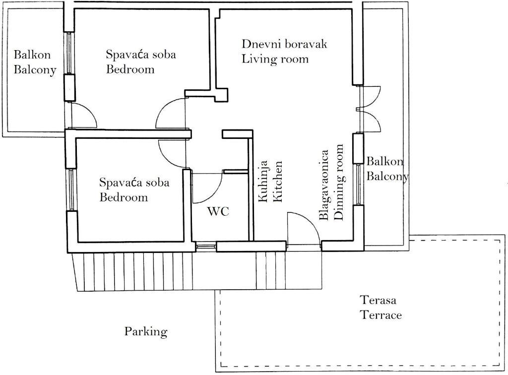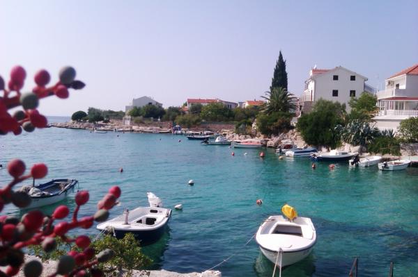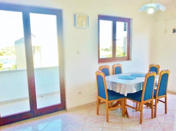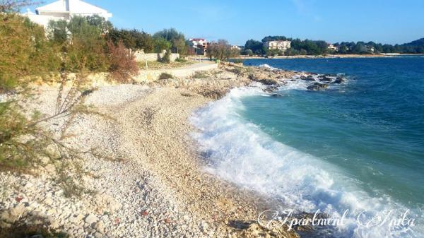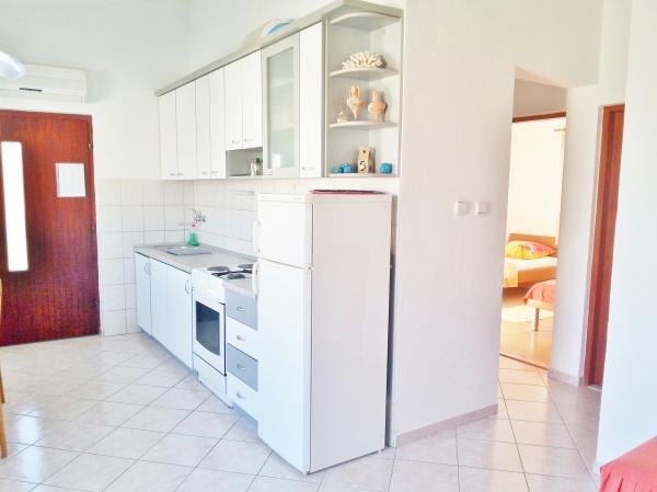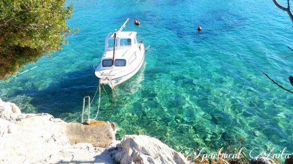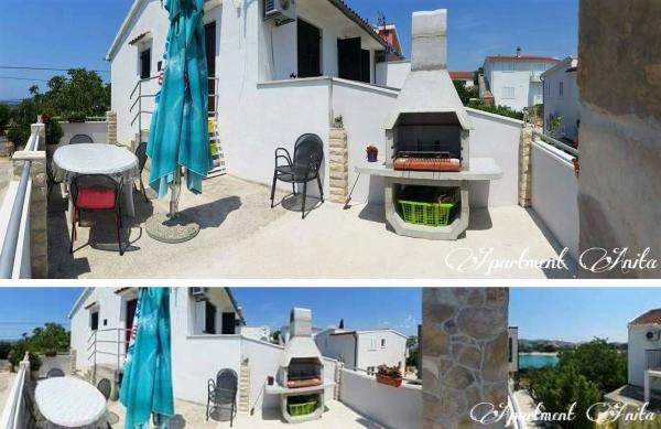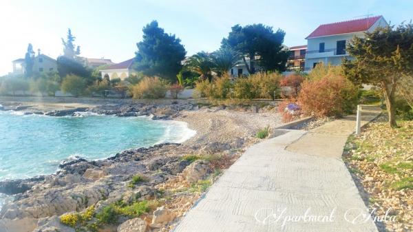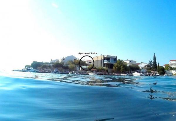 Apartmán Anita se nachází v klidném prostředí. V prvním patře budete mít nádherný výhled na moře ze všech tří stran bytu a ne na hlavní silnici. Byt má rozlohu 65 m2 a má dva balkony a terasu. Byt má dva pokoje (jeden je dvoulůžkový pokoj a druhý má dvě samostatné postele), koupelna, kuchyň a pohodlný obývací pokoj s klimatizací a inteligentní satelitní TV. Apartmán u vchodu má velkou terasu se slunečníkem, posezením a grilem. V bytě je volný internet. Jedno parkovací místo je před domem. Vzdálenost od moře a pláže je 20 m a nejbližší obchod je 100 m. Existují různé pláže, od oblázkové až po skalní a ty, které jsou betonovány. Nejkrásnější jsou oblázky, kde najdete přírodní stín stromů, nebo chcete-li použít slunečníky pro pláž.