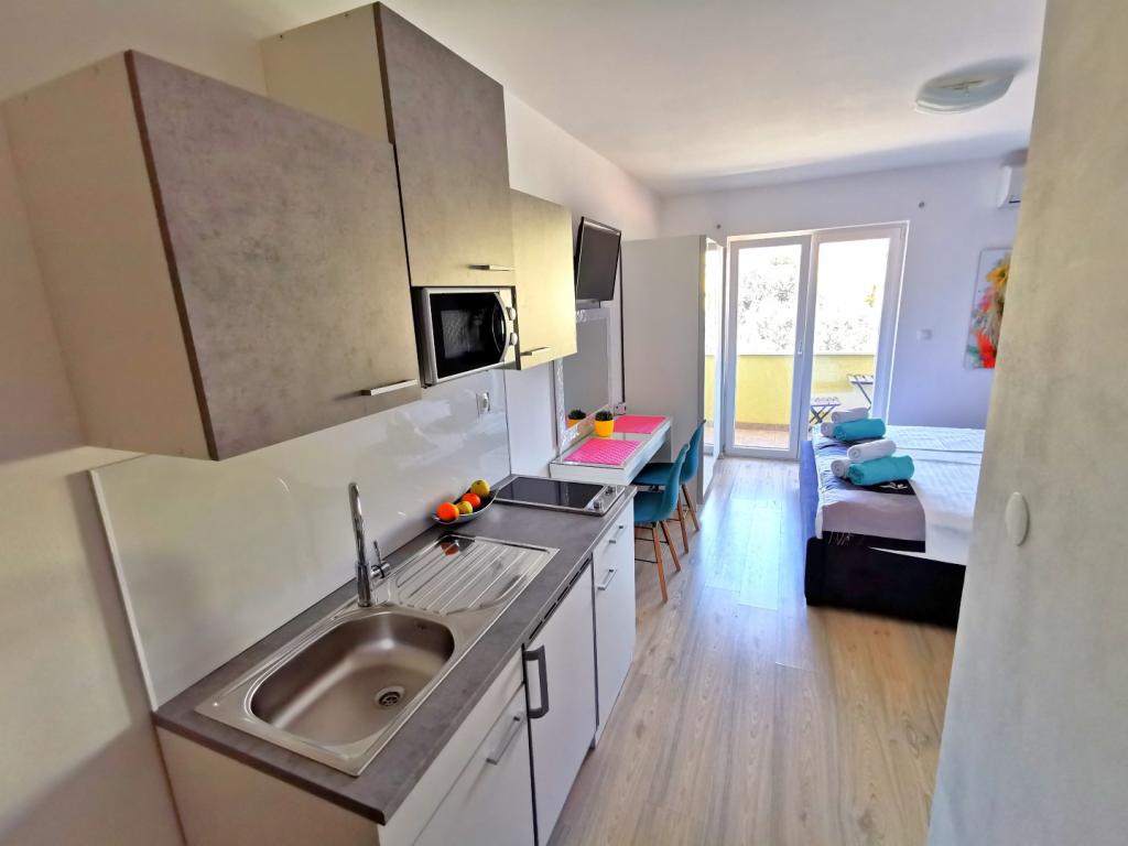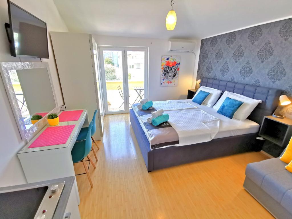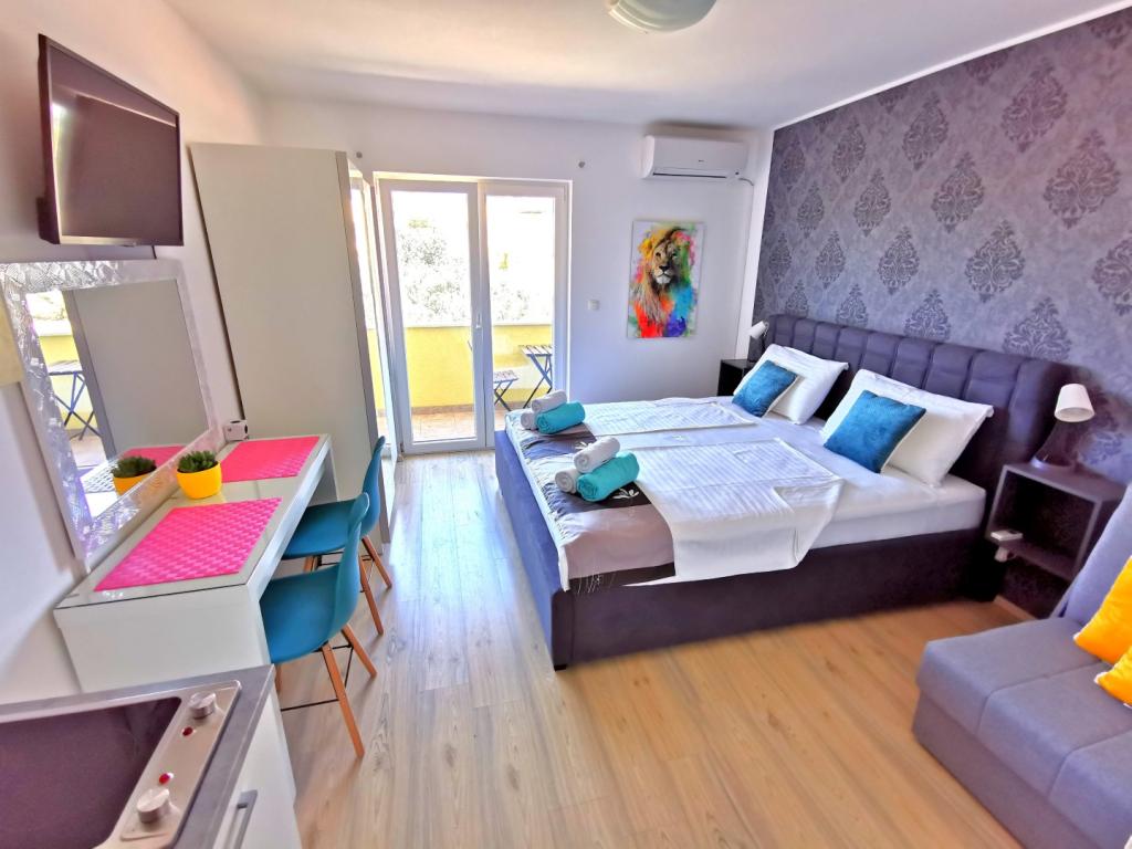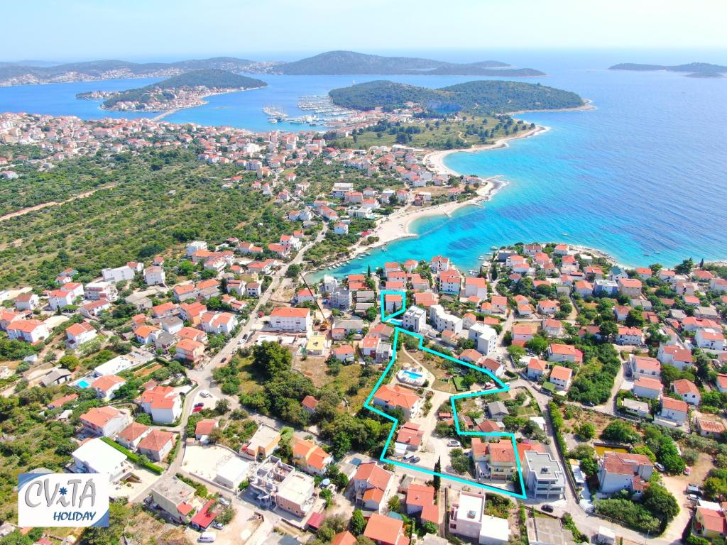 Vážení hosté, pokud hledáte příjemnou a odpočinkovou dovolenou vysoké kategorie v přátelském prostředí, jste na správném místě! V našem rodinném resortu, který se rozkládá na cca 5000 m2, Vám nabízíme devět exkluzivních apartmánů umístěných ve třech vilách, Villa MARTINA (30 m od moře), Villa NATALI (100 m od moře) a Villa DARIA (150 m od moře). moře)). Součástí našeho resortu je prostorný dvůr s dětským hřištěm, sportovním hřištěm a soukromým bazénem se sluneční terasou, který mohou využívat výhradně naši hosté. Naši rodinní příslušníci vám budou k službám po celou dobu vašeho pobytu a budou se snažit vyhovět všem vašim potřebám a zpříjemnit vaši dovolenou co nejvíce. Vítejte v CVITA Holiday Apartments!