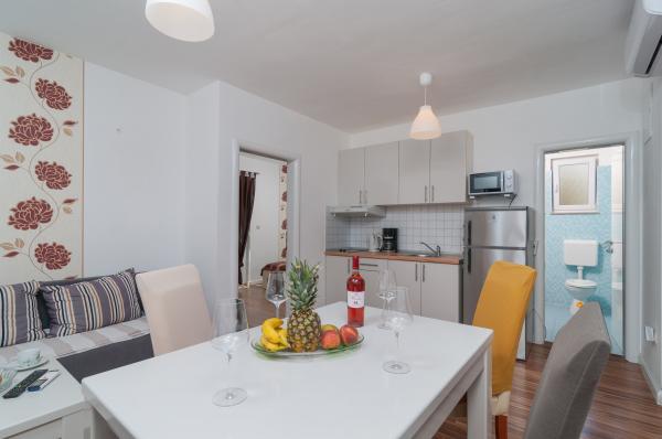 Apartmány velmi dobře vybavené, čisté a uklizené. Velmi blízko: pláž, obchody, pekárny, restaurace, vše na dosah. Hosté mají k dispozici jízdní kola, takže si můžete prohlédnout okolí. Rogoznica je krásné místo. Velmi milí a užiteční hostitelé! Děkuji