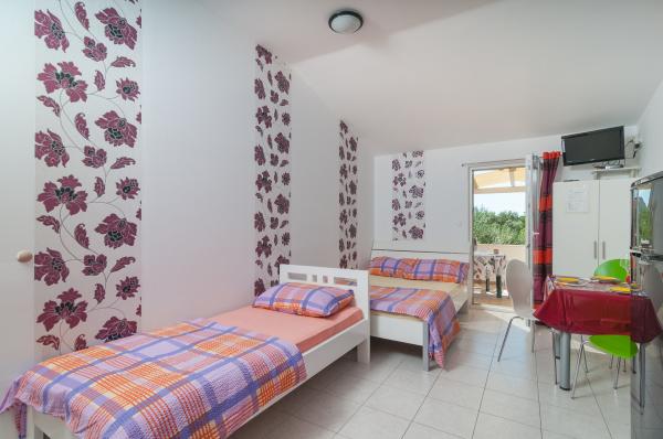Pokoje čisté, vchod byl samostatně, klimatizace fungovala, pláž Miline na pár kroků, všechno bylo jak má být. Pobyt nám znepříjemnily jen komáry a cvrčci, které "šli" nonstop. Ale cvrčci hráli v celé Rogoznici.