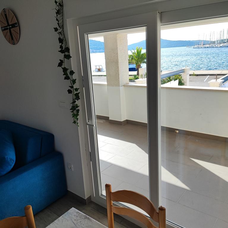 Apartmány se nacházejí v první řadě u moře s krásným výhledem na moře a jachty. V blízkosti je banka, bankomat, obchody, obchody se suvenýry, tržnice a restaurace, takže hosté mají veškerý volný čas výhradně na dovolenou. Místo je obklopeno dlouhou procházkou, která je také využívána pro cyklistiku.