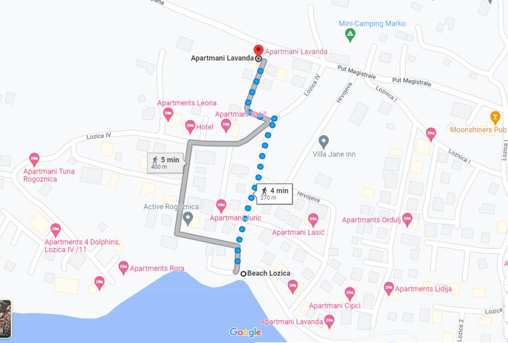 Nové a moderně vybavené apartmány Lavanda se nacházejí v klidné a atraktivní části Rogoznice. V centru Rogoznice můžete být za 10 minut procházkou podél pobřeží, které je jen asi 150 metrů od apartmánu. Podél promenády, stejně jako v centru, se nachází četné restaurace a zajímavá zařízení, která spolu s čistým mořem a chutným jídlem doplní zážitek z tohoto malého dalmatského města. Nejbližší pláž je 4 minuty chůze od apartmánu. Hosté apartmánu mají k dispozici také gril, kde si mohou připravit čerstvé ryby a další pokrmy. Hosté mají k dispozici dvě ubytovací jednotky s terasou s výhledem na moře a Rogoznici. Ubytovací jednotky mají vlastní vnější vchody, které umožňují naprosté soukromí.V ceně je zahrnuto parkování, internet, klimatizace a pobytová taxa.
