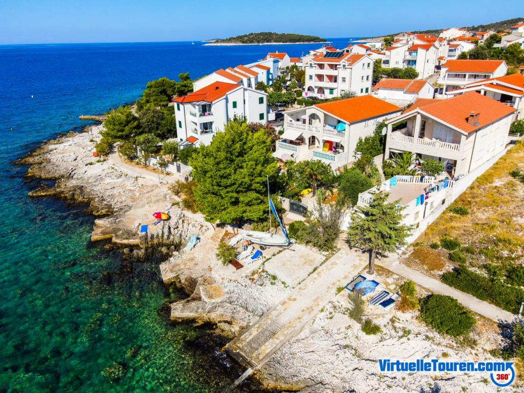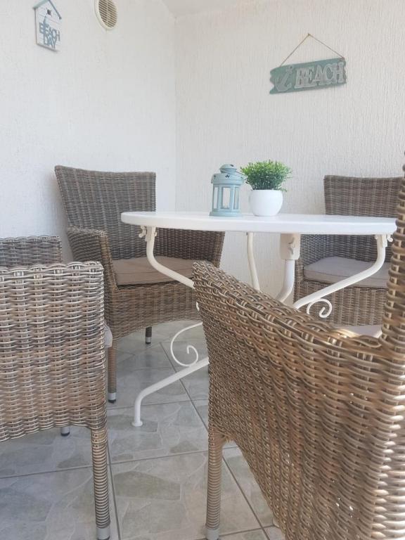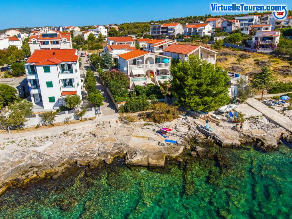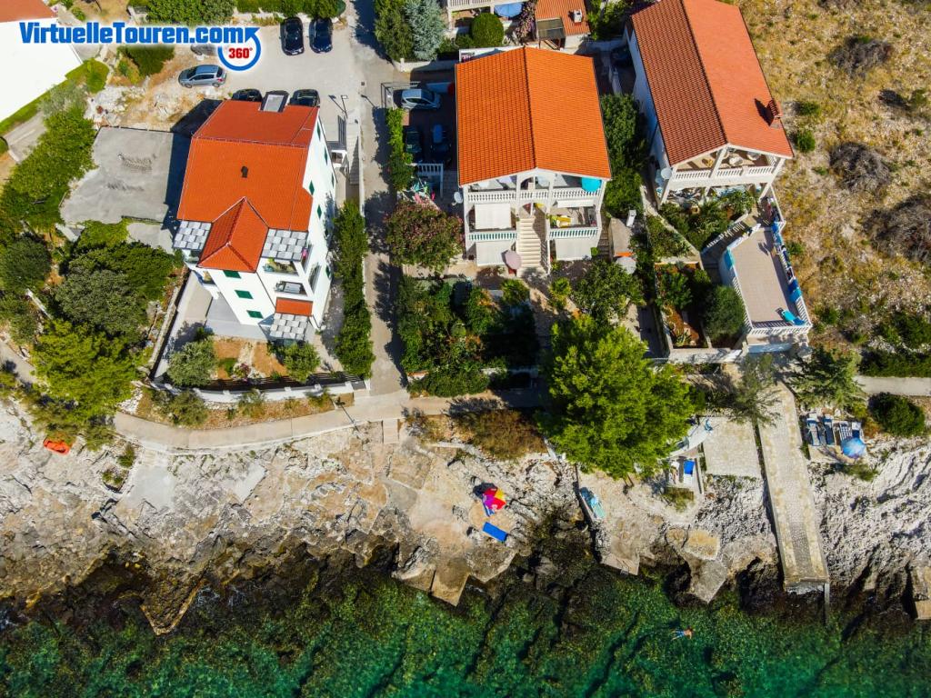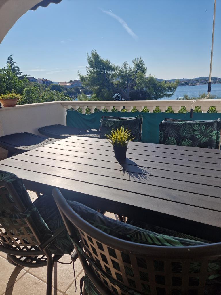 Unikněte stresu a davům.. Přijďte si odpočinout! Komfortní, velké apartmány se dvěma ložnicemi, s luxusní terasou, nacházející se v první řadě u moře, pláž přímo před domem, krásný výhled na moře a svěží zahradu ze všech apartmánů.