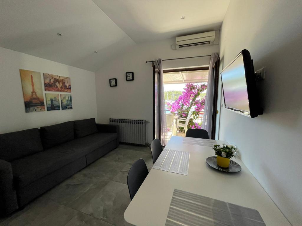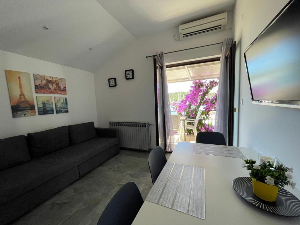 Apartmány Sime se nachází přímo u moře, s krásným výhledem na staré město a Marina Frapa. V blízkosti domu se nachází promenáda, která spojuje staré místo, na nové i cyklostezky, které jsou ideální pro turistiku okolních oblastí.