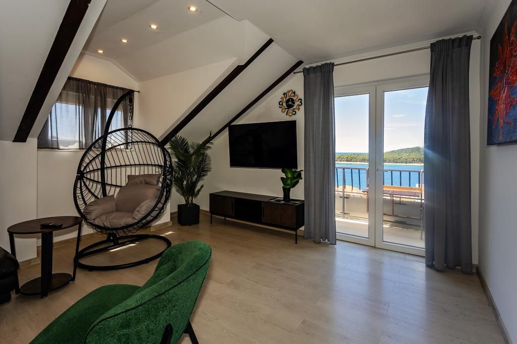 Apartmán Skorin se nachází v rodinném domě na poloostrově Rogoznica, který se nachází v centru města. V okruhu 300 m se nachází většina zařízení a služeb, které Rogoznica nabízí. V objektu jsou 4 apartmány, takže si každý může vybrat to, co mu nejlépe vyhovuje. Apartmány byly zrekonstruovány v letech 2017, 2022 a 2023. 50 m od objektu byl otevřen nový venkovní prostor pro cvičení.