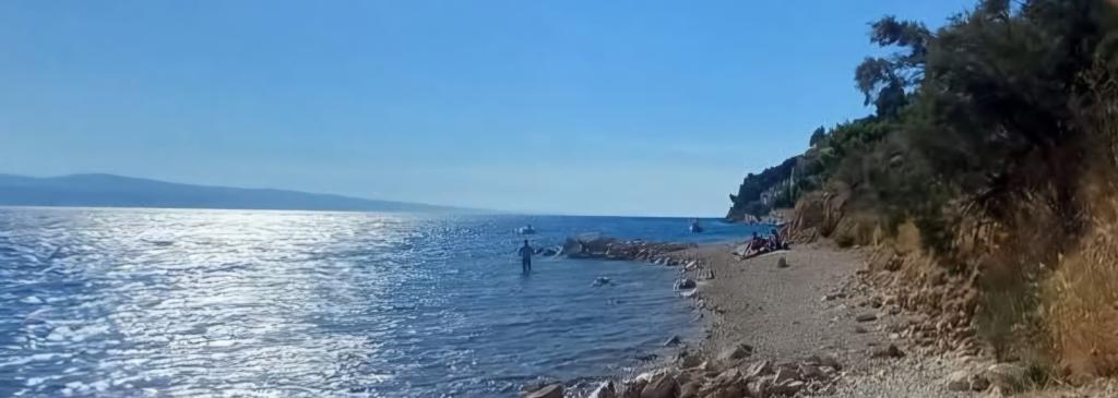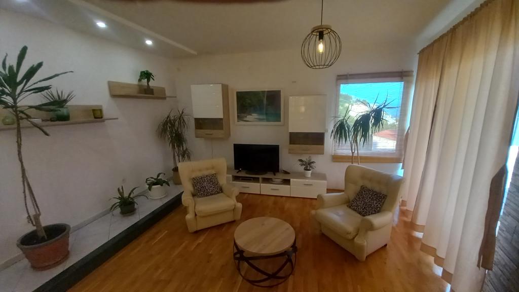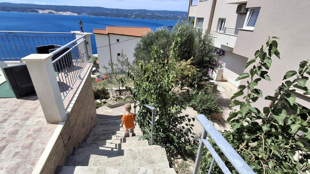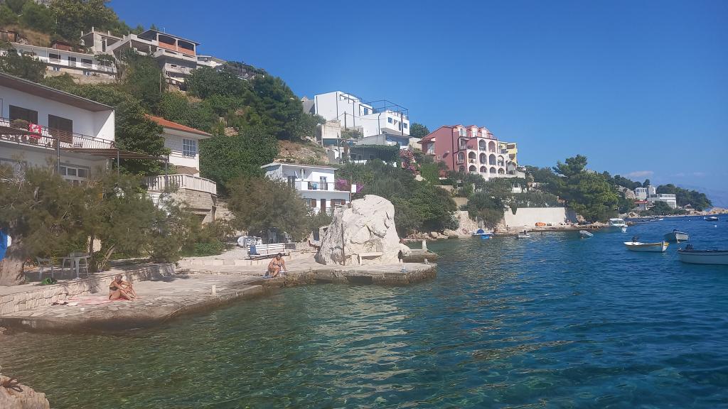 Apartmán doporučil, vše jak je popsáno (myčka, trouba, velká lednice, bidet). Ohromující výhled na moře z balkonu a kuchyně. V jedné ložnici je další balkon s výhledem na moře, a ve druhém okně s výhledem na krásné hory. Na pozemku je bazén s krásným výhledem na moře a hory. Na nedaleké pláži (v přízemí), je velmi intimní, tam nebylo moc lidí - malá pláž oblázky a mnoho míst, kamenitá / beton, a to, co je důležité temný. Velmi pěkný hostitel (Ivo vás a vaši rodinu pozdravit) - milý a ochotný. Jednoho dne nám on přinesl teplé sušenky s náplní.