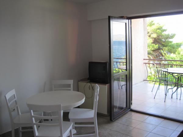 Ideální pro rekreanty autem, romantiky, kteří milují samotu, čistou pláž. Na pláži je málo lidí, ubytování je 2-3 kroky, jdete za bránu - a máte vlastní pláž, každá vila má vlastní lehátka, je tam obrovská borovice, pod kterou se vejdou všichni rekreanti. Je tam nádherný balkon s výhledem na moře, dole rostou kiwi, malá zahrada s pomeranči nebo citrony, místo pro grilování. Matrace jsou pohodlné, postele široké. Jediné, co bylo, bylo, že v ložnicích bylo velké horko, protože klimatizace je pouze v kuchyni. Je tam pohovka. Požádali jsme o ventilátory a oni nám je dali. Ale bylo by lepší mít klimatizaci.