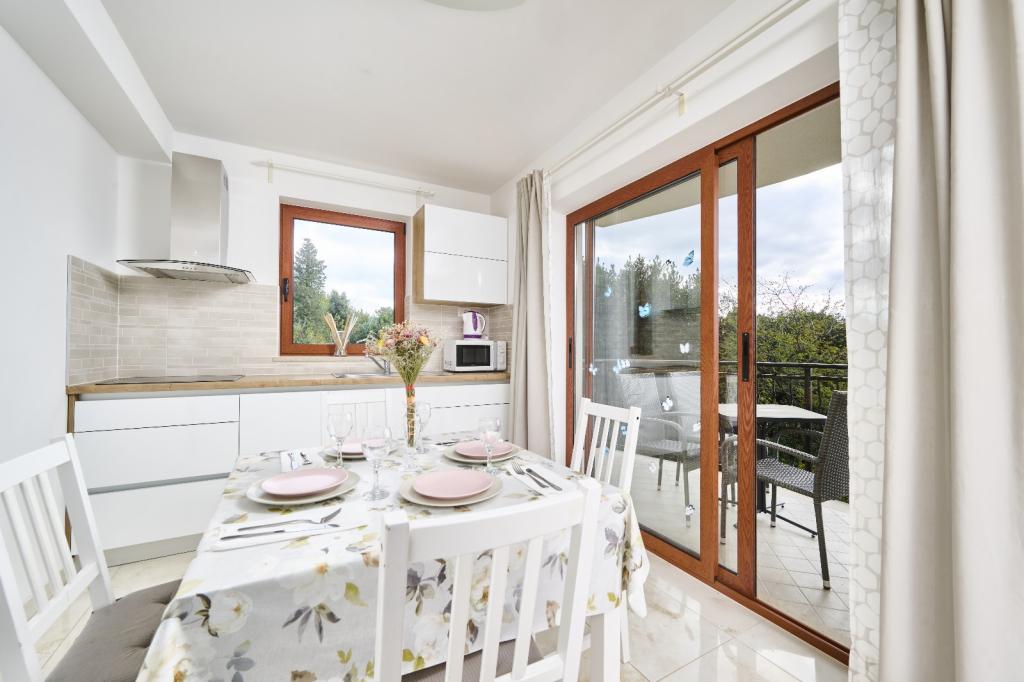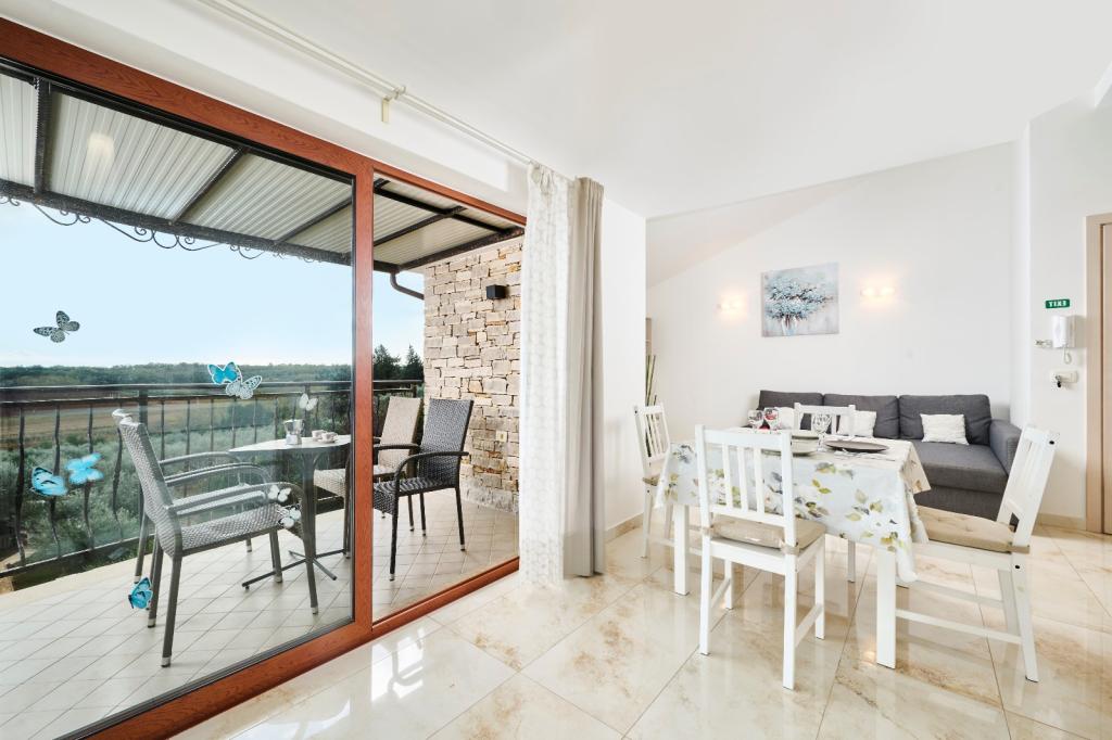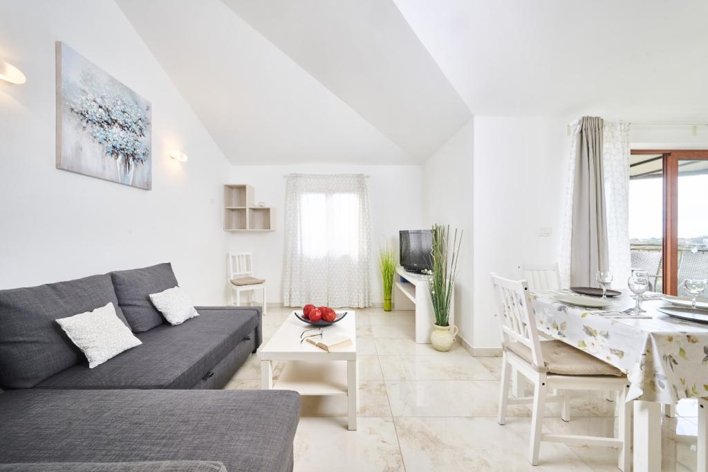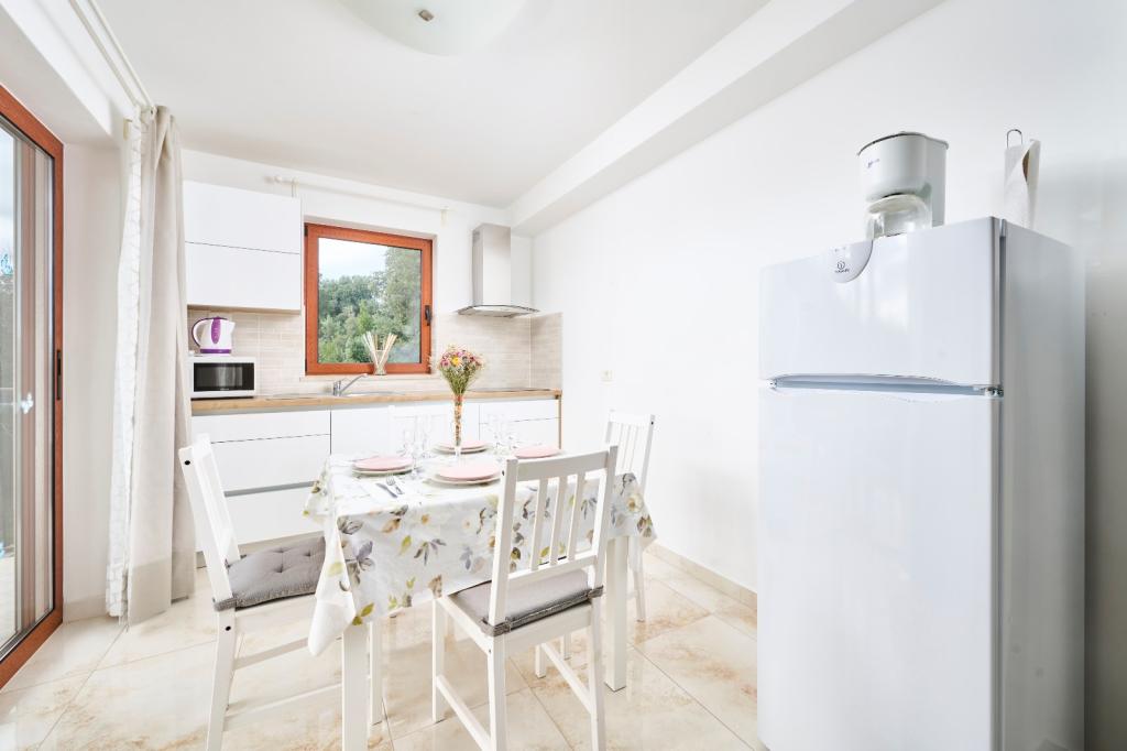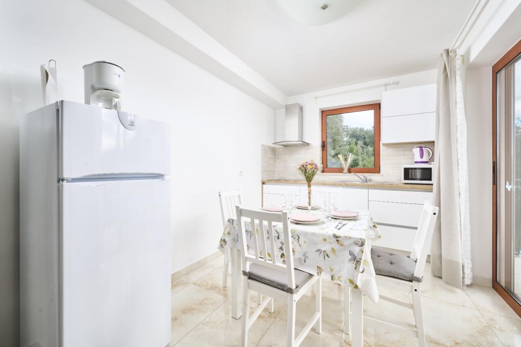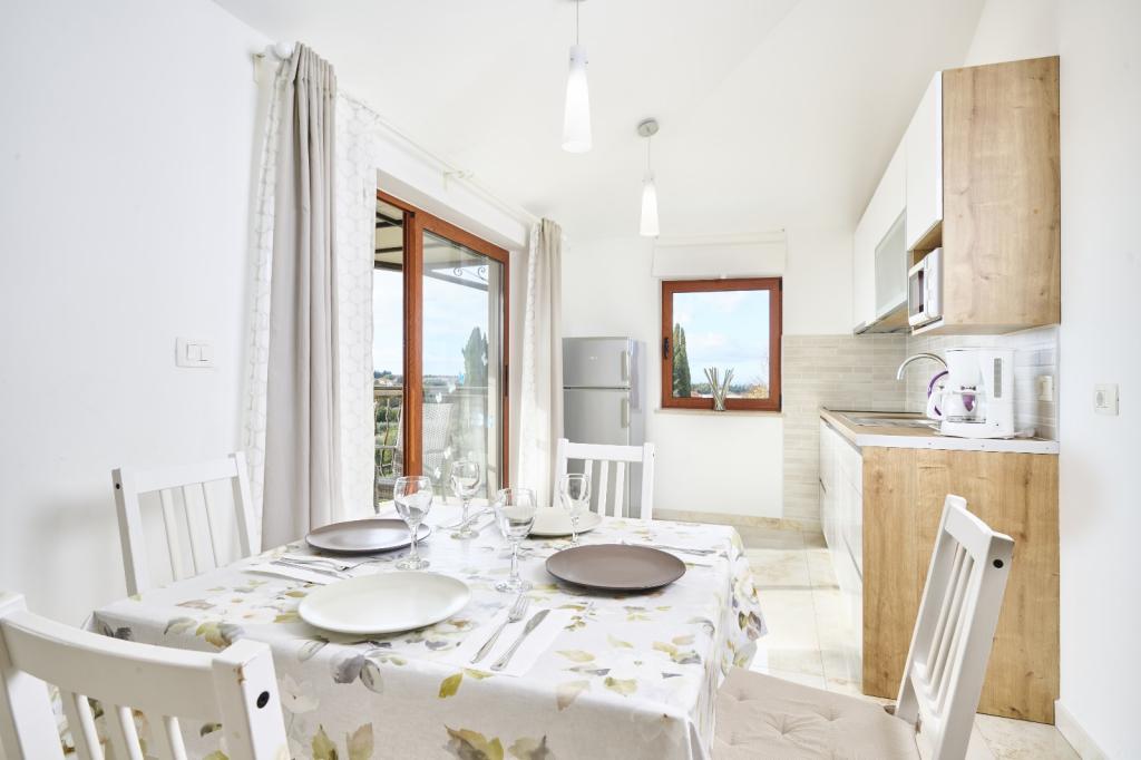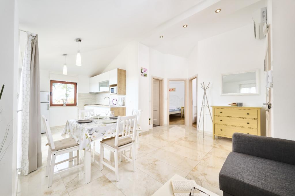 Moderní a vybavený apartmán se dvěma ložnicemi. Jeden pokoj s manželskou postelí, druhý s palandou. Otevřený a vzdušný obývací pokoj, kuchyň s myčkou nádobí, koupelna s pračkou. Terasa, klimatizace, wifi, satelitní TV. Bazén, soukromé parkoviště, krytý gril. Vzdálenost od restaurace 300 metrů, vzdálenost od pláže 1300 metrů