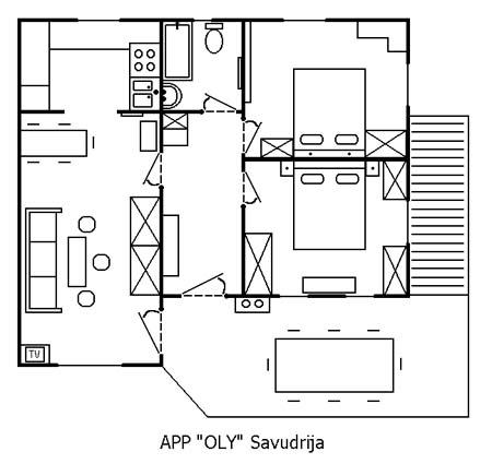 Moderně vybavené apartmány v soukromém domě obklopeném zahradou plnou zeleně a velkým soukromým krytým parkovištěm. Apartmán OLY-1 se nachází v prvním patře a apartmán OLY-2 je v přízemí. Na oknech jsou ochranné sítě, které chrání před hmyzem. Dům je jen 300 metrů od moře a pláže. Centrum obce s obchody, poštou, bankou, restauracemi, pizzeriemi... je vzdáleno pouhých 10 minut chůze. Odpočiňte si a prožijte příjemný pobyt v klidném prostředí apartmánů OLY.