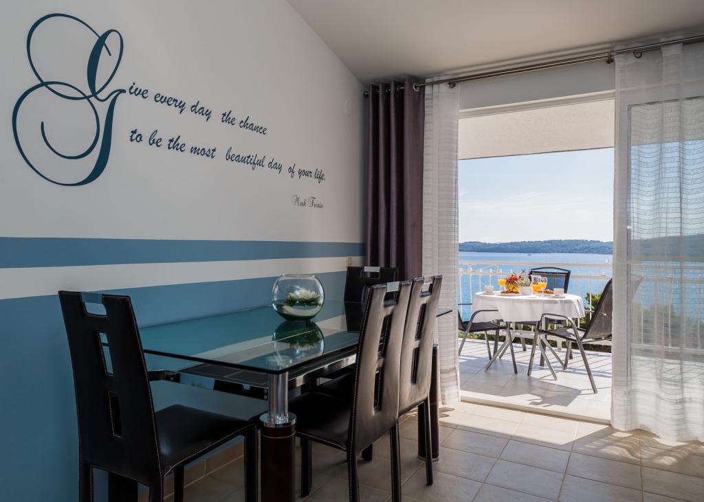 Adriatic Sea View Apartments se nachází v srdci Dalmácie, v malé rybářské vesnici Seget Donji s dlouhou turistickou tradicí, 2 km od města Trogir UNESCO a 22 km od Splitu a Diokleciánova paláce. Máme pět komfortně zařízených a pěkně vybavených apartmánů, přizpůsobených potřebám našich hostů. Výborná poloha budovy, pouhých 100 metrů od moře - pláže! Díky výborné poloze bytu je v okolí mnoho zábavních a rekreačních zařízení, kaváren a restaurací. Všechny apartmány mají krásný výhled na moře, jsou upravené, čisté a vzdušné se spoustou denního světla. Každý apartmán má terasu nebo balkon, kde můžete relaxovat s první ranní kávou a za teplých letních večerů s krásným výhledem na moře zalité měsícem. Důležité: Každý apartmán má samostatný vchod - nejsou zde žádné společné místnosti, které sdílíte s ostatními hosty. Zavádíme také další bezpečnostní a hygienická opatření.