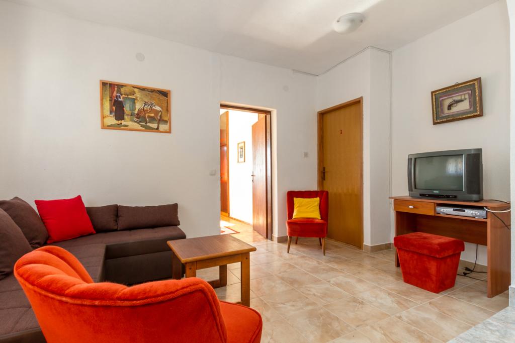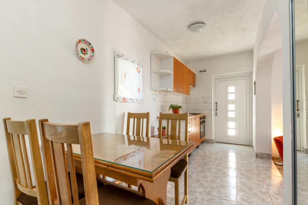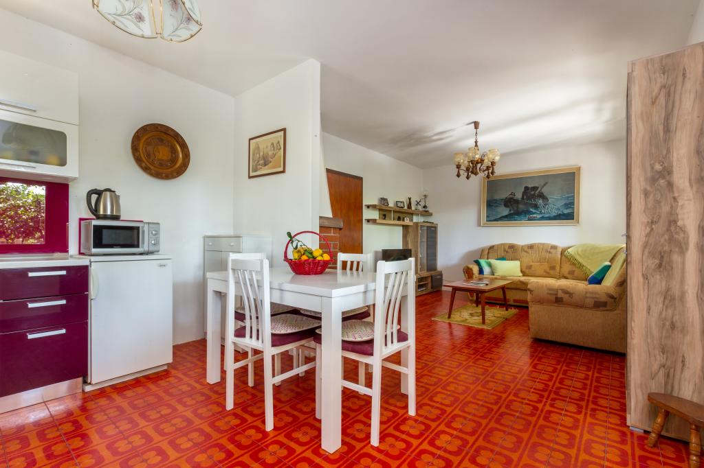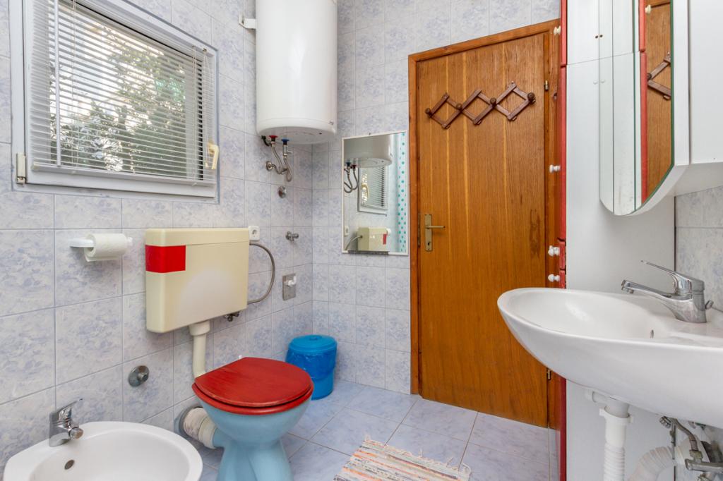 Dům má 2 podlaží, obklopen zelení a zahradou, velká zahrada, klidné prostředí, cvrlikání ptáků, orientace na jih, slunná strana.Vzdálenost 50 m. Od moře pár minut chůze do centra, v blízkosti kempu, který má zdarma bazén k použití atd.