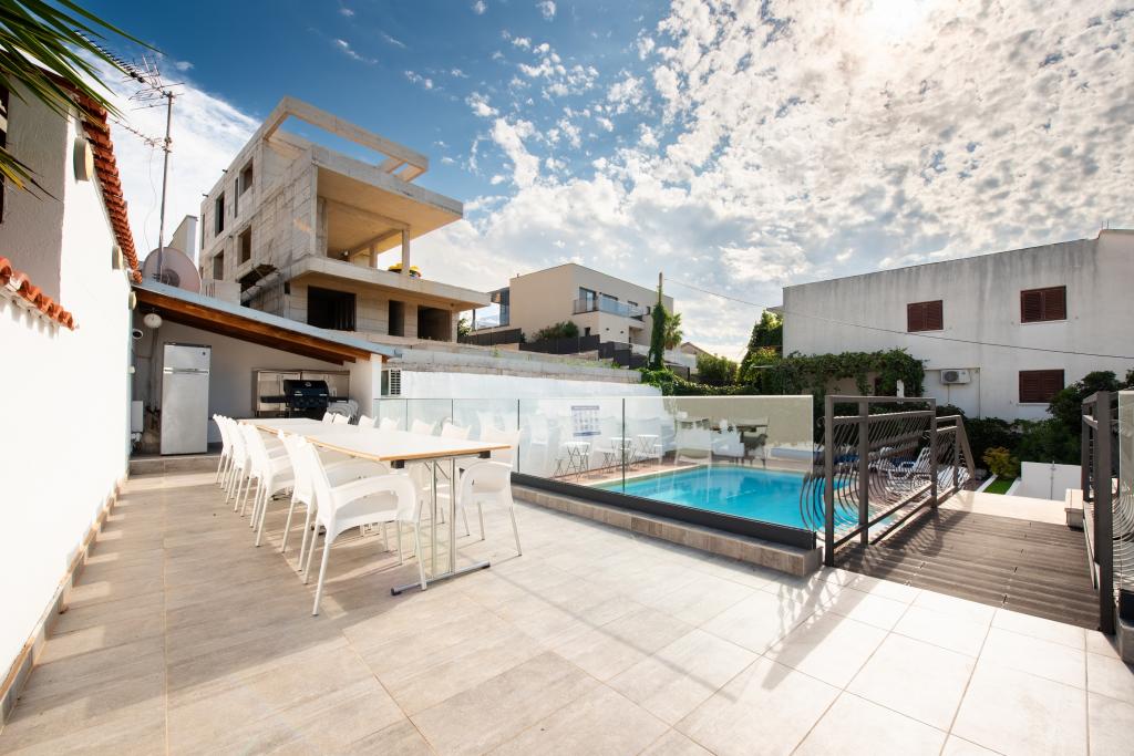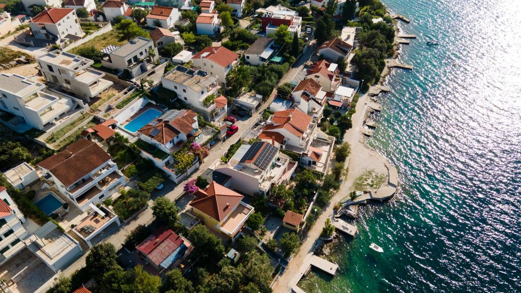 Villa A'Mare nabízí ubytování se sezónním venkovním bazénem, zahradou a společnou terasou s grilem pro vaše pohodlí. Apartmán má bezplatné Wi-Fi a soukromé parkoviště. Ubytování má klimatizaci, plně vybavenou kuchyň s jídelním koutem, TV s plochou obrazovkou a vlastní koupelnu se sprchou a fénem. K dispozici je také mikrovlnná trouba, lednice, trouba a rychlovarná konvice. Hosté Villa A'Mare mohou využívat vířivku. Ubytování nabízí gril a sluneční terasu a nachází se 50 m od oblázkové pláže. Nejbližší letiště je letiště Split, 10 km od apartmánů.