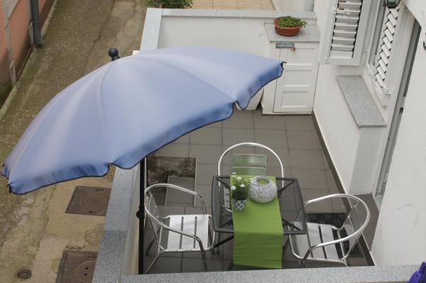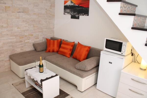 Moderně vybavený byt ve dvou patrech (rodinný dům v řadě) s vlastní terasou ve starém městě ve velmi klidné lokalitě a jen 50 m od centra, v blízkosti supermarketů, pošty, směnáren, kaváren a restaurací. vzdálenost od pláže 100 m. V horním patře je ložnice s manželskou postelí 160x200 a koupelna a ve spodním patře je obývací pokoj s kuchyní a rohovou pohovkou, která slouží jako přistýlka 160x200 . Byt je plně vybaven vším pro příjemnou dovolenou. Před vchodem je terasa 10 m2, kterou lze použít jako letní jídelnu nebo jako místo k odpočinku. V domě není kouření. Domácí zvířata nejsou povolena. Pro hosty je zajištěno parkování pro jedno vozidlo 5 minut chůze od bytu. Po odchodu hostů je apartmán podrobně dezinfikován a jsou přijata veškerá opatření k ochraně hostů před infekcemi. V případě potřeby je v blízkosti lékařská pomoc, která je k dispozici 24 hodin.
