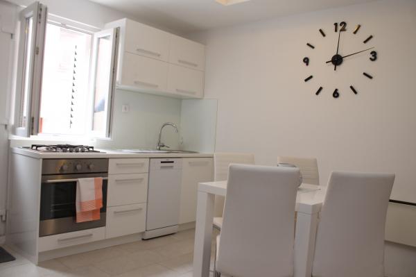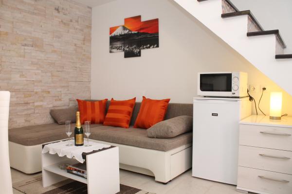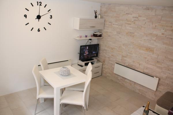 V apartmánu jsme byli ubytováni letos v červenci. Domluva s paní Ines perfektní. Psali jsme si SMS, popsala nám cestu a pěkně nás uvítala. Apartmán přesně podle popisu, sice malý ale krásný a čistý!! Nahoře ložnice kde se vyspí dva dospělí a dole v obýváku s kuchyňkou rozkládací gauč kde se pohodlně vyspí dvě osoby. Apartmán je v klidné ulici ale jen pár metrů od centra a přístavu. Na nádhernou písečnou pláž vhodnou pro malé děti je to trochu dál než je uvedeno, asi do 10 min pomalou chůzí. (Bohužel v sezoně hlava na hlavě a proto jsme si raději půjčovali lehátka, aby jsme měli svůj prostor. 2 lehátka a deštník asi 350 Kč) Podél pobřeží spousta restaurací a večer krásné procházky..
