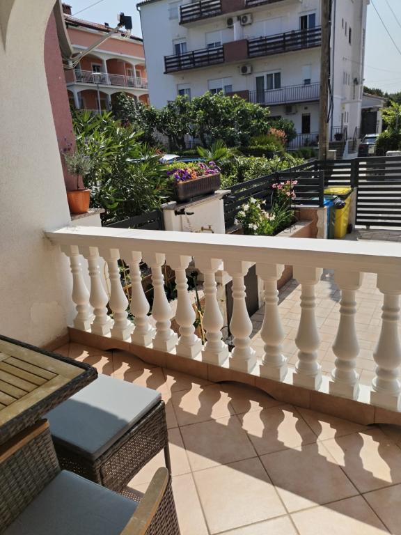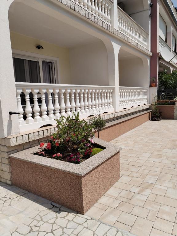 Byt se nachází v rodinném domě, hned vedle autokempu, pár minut od moře a známé pláže Rokan. Na promenádě, která se táhne celým městem, je řada restaurací, kaváren, sportovních zařízení a obchodů. Byt se skládá ze dvou velkých dvoulůžkových pokojů, každý s možností jedné přistýlky /rozkládací/, kuchyně s jídelnou, kde je rohová sedací souprava a TV, a prostorné koupelny s vanou a sprchovým koutem. V koupelně je pračka. Každý pokoj a kuchyně se otevírá na krytou terasu.