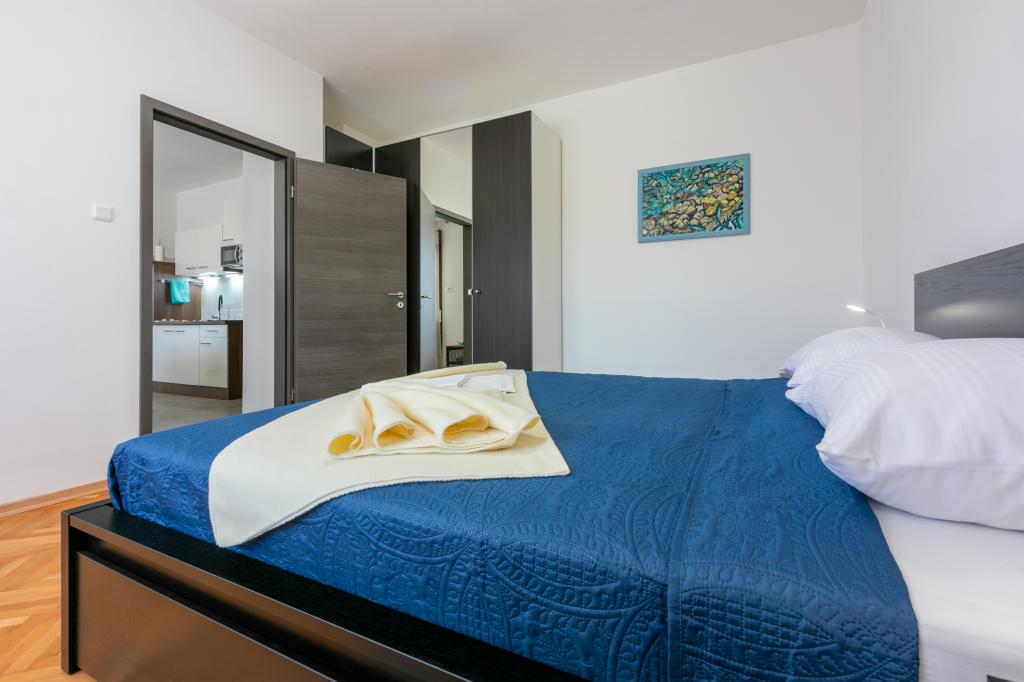 Apartmány jsou v rodinném domě, pár minut chůze od moře a promenády s řadou restaurací, kaváren, sportovních zařízení a obchodů. Apartmán "Ema" (2+2) se skládá z dvoulůžkového pokoje, kuchyně s jídelnou, kde je rozkládací dvoulůžko, které lze rozložit na dvojlůžko, koupelny a prostorné terasy s grilem. Druhý apartmán "Gita" (2+1) má dvoulůžkový pokoj, prostornou kuchyň s jídelnou s rozkládací pohovkou, koupelnu a prostornou terasu.