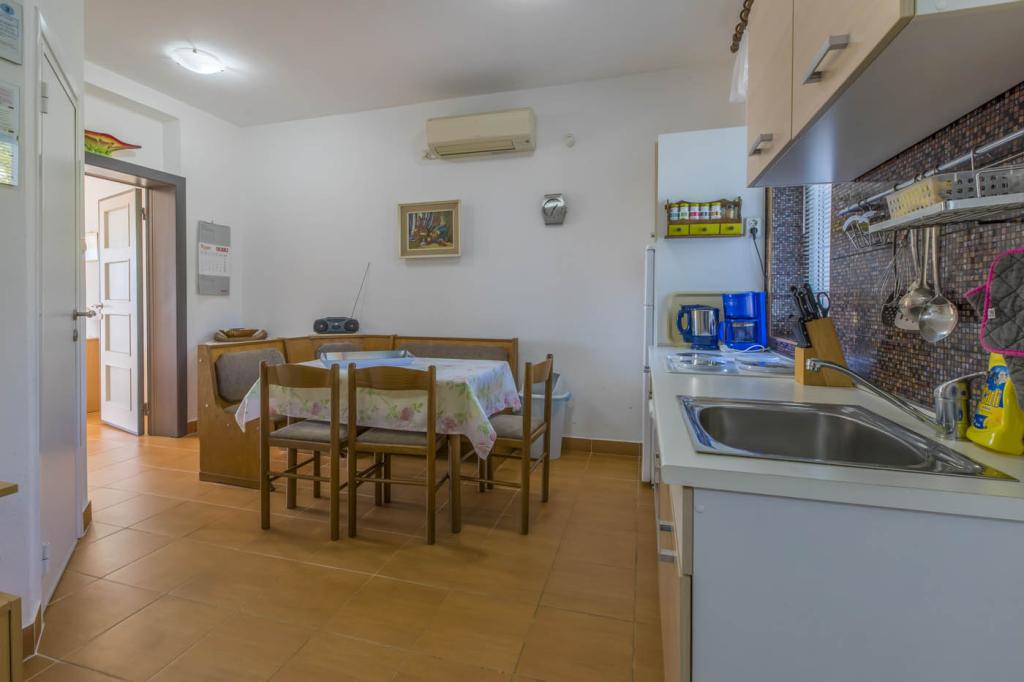 Krásný rodinný dům nacházející se 80 m od první pláže se skládá ze 6 samostatných ubytovacích jednotek rozložených na třech podlažích, každá se samostatným vchodem a výhledem do zahrady a na moře. Mezi ubytovacími jednotkami nabízíme Studio pro dvě osoby, Velké studio pro tří- nebo čtyřčlennou rodinu, kde je dětská postel na galerii (a děti to milují :)), a Velký dvoupokojový apartmán se dvěma ložnicemi a obývacím pokojem s rohovou rozkládací pohovkou. Dvůr je zelený, zdobený olivovníky, fíkovníky a kopřivami a malou sezónní zeleninovou zahradou. Parkoviště, které je nedílnou součástí budovy, je přístupné vjezdem do dvora z hlavní ulice. Hostitelé se nacházejí v přízemí a rádi zodpoví všechny případné dotazy, zajistí další postýlku pro miminko, dětskou židličku, zapůjčí vám něco, pokud v bytě chybí, nebo opraví případné závady.