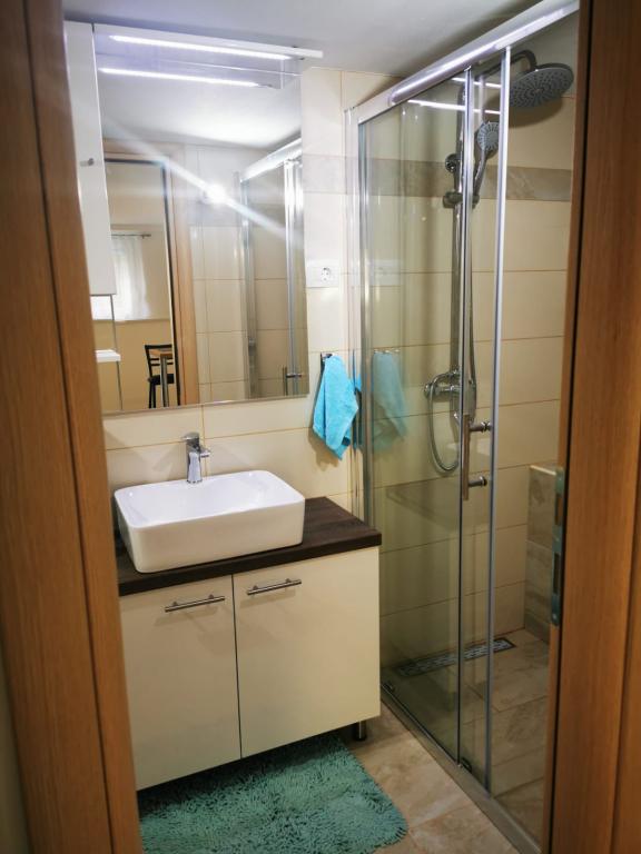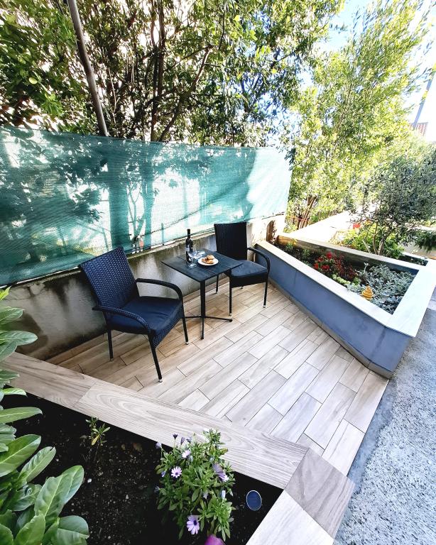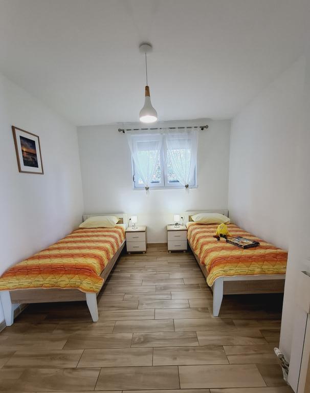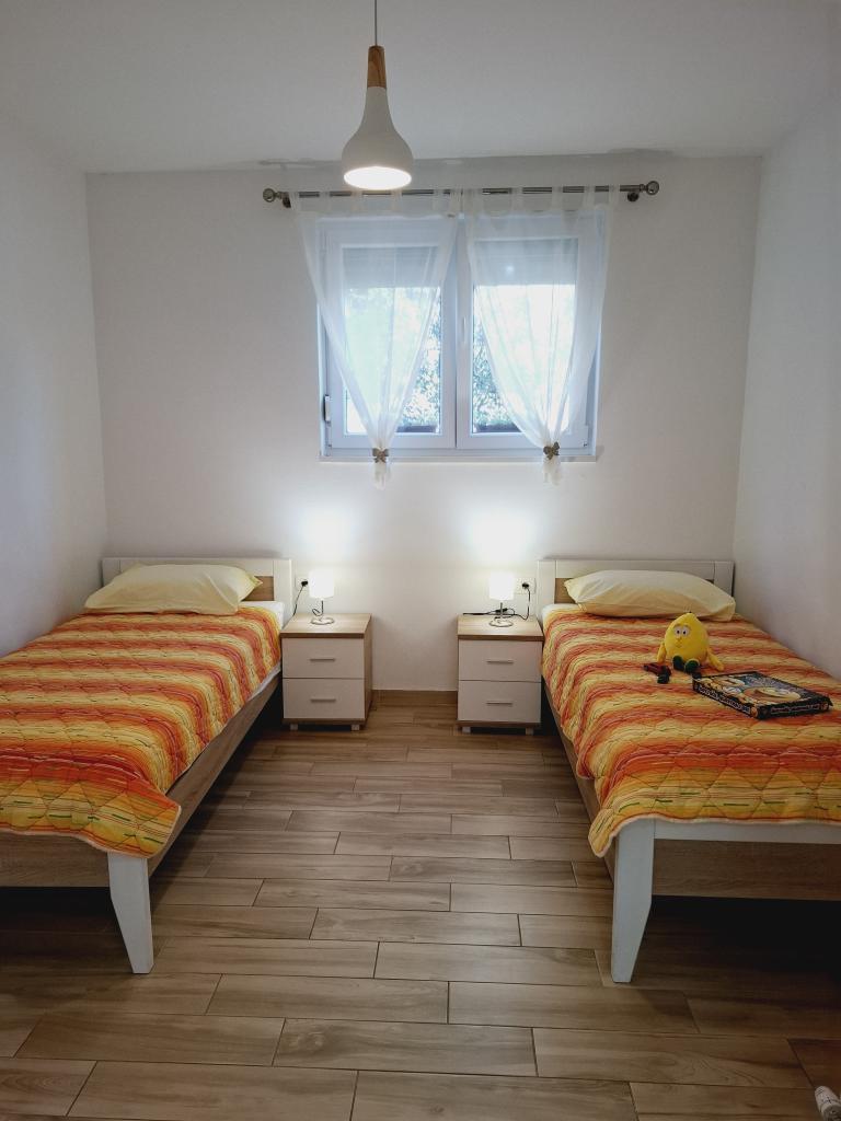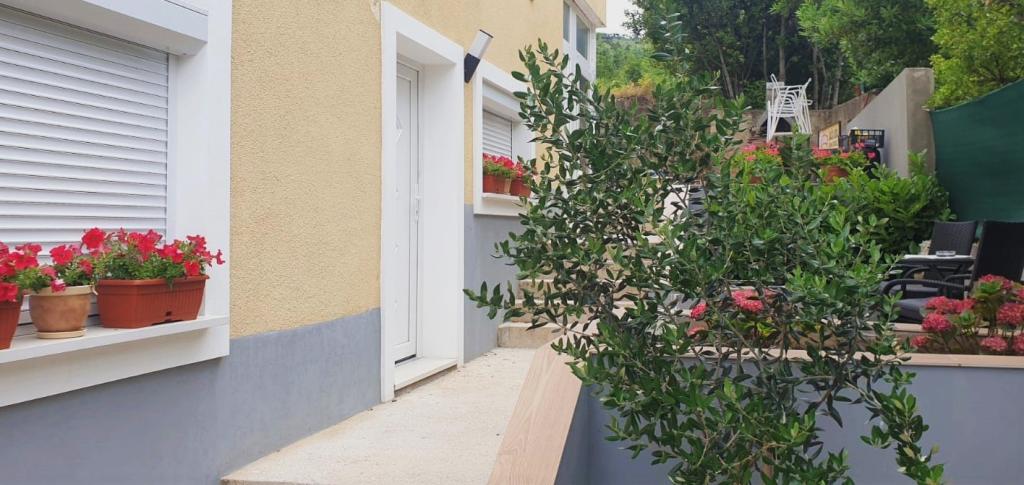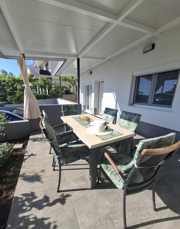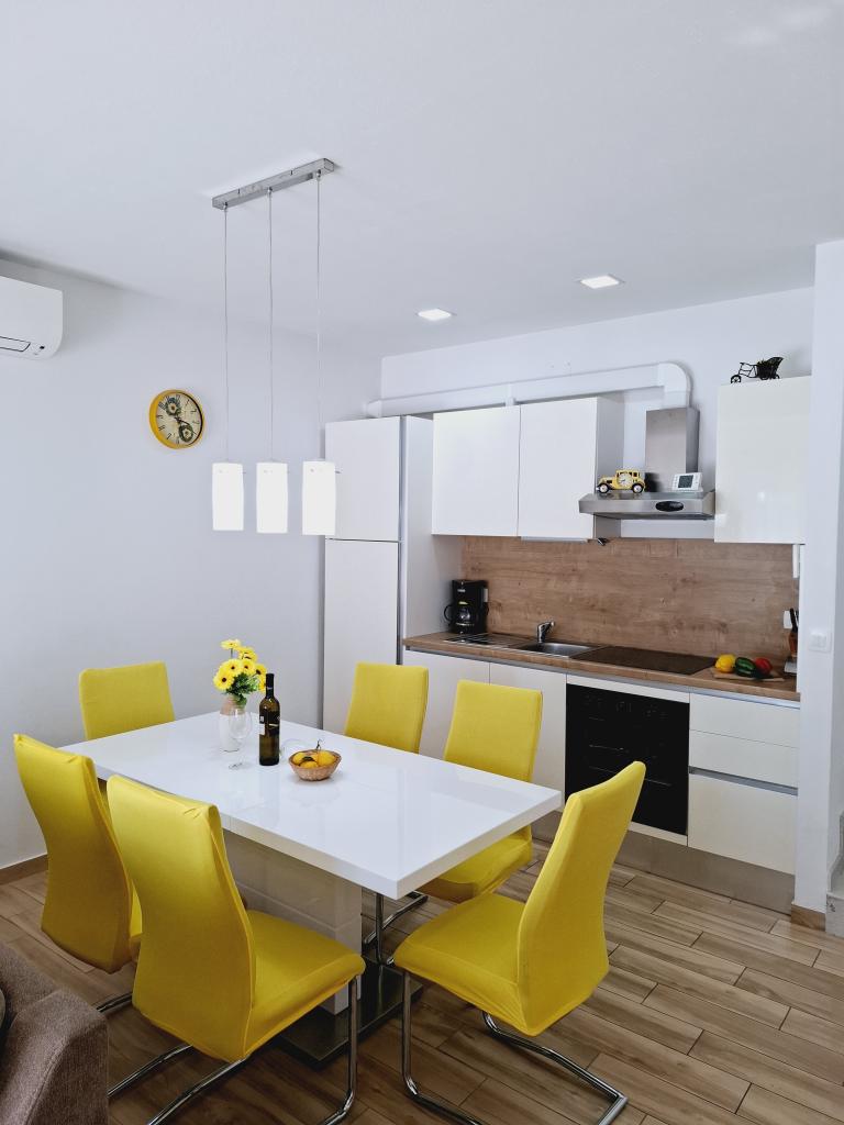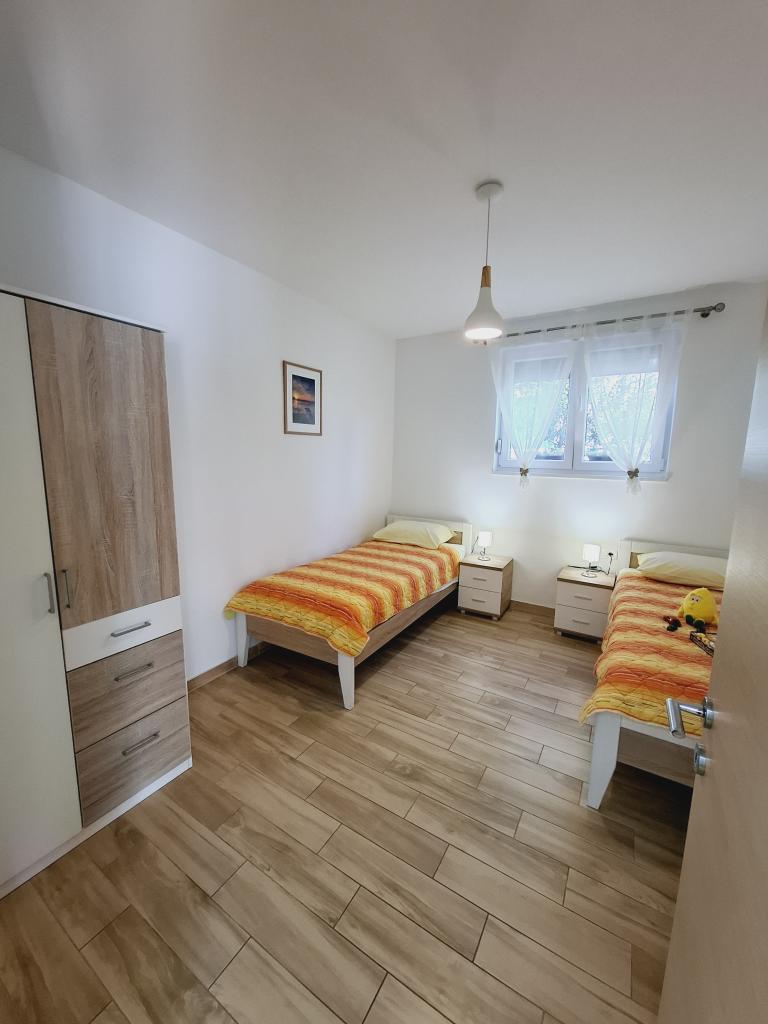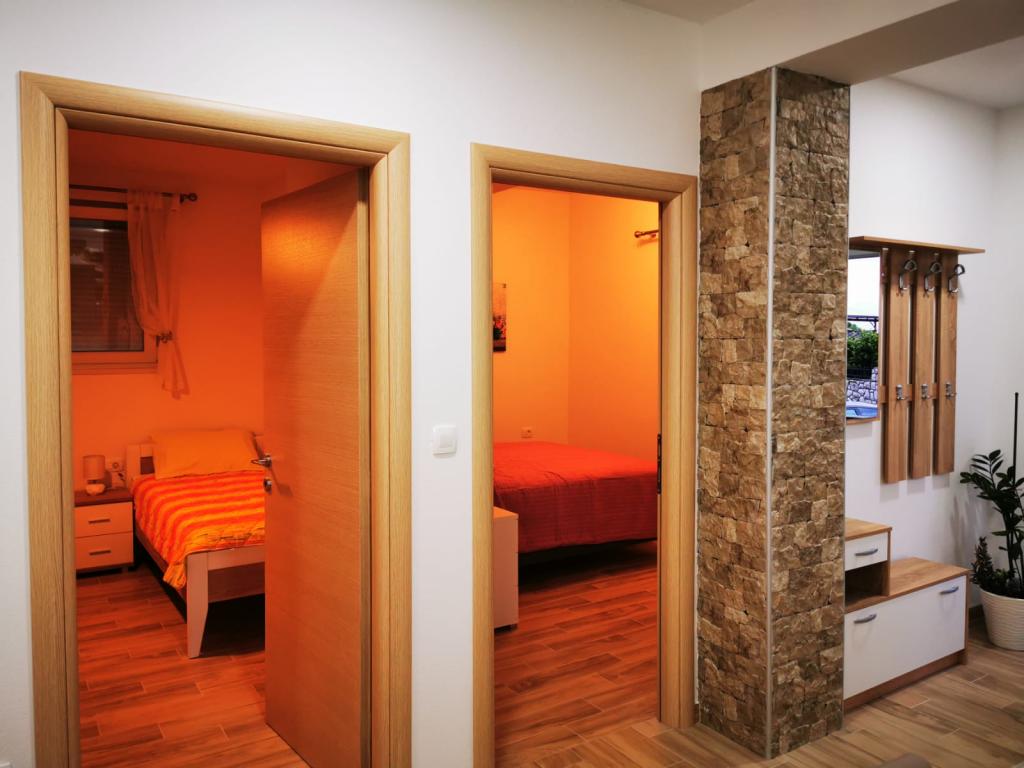 Apartmán 1 se nachází v přízemí rodinného domu s velkou soukromou terasou a částečným výhledem na moře. Plně vybavený, klimatizace, internet, parkování. Nachází se přibližně 300 m od moře a pláže a centra města. Skládá se ze dvou dvoulůžkových ložnic (jedna s manželskou postelí, jedna se dvěma samostatnými lůžky), obývacího pokoje, vybavené kuchyně s jídelnou (myčka), koupelny (pračka) a samostatné toalety. Parkování pro 1 vozidlo je zajištěno na dvoře domu. Studiový apartmán se nachází v přízemí (vysoké přízemí) rodinného domu. Má kuchyň, manželskou postel 160x200 cm, koupelnu, klimatizaci a malou terasu před studiem. Společné užívání grilu. Apartmán Lea se nachází ve 2. patře. Má 2 ložnice, vybavenou kuchyň, koupelnu (pračka), klimatizaci, velkou terasu s výhledem na moře. Parkování pro 1 auto je zajištěno na dvoře domu.