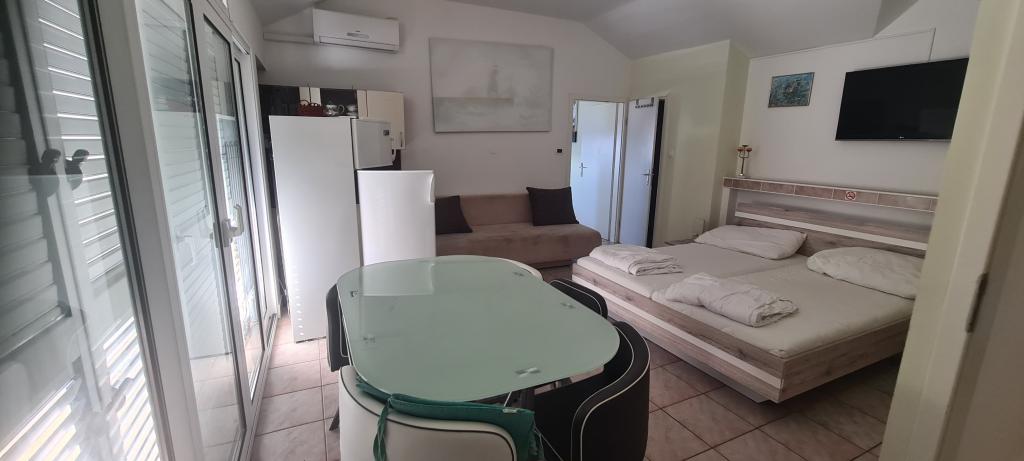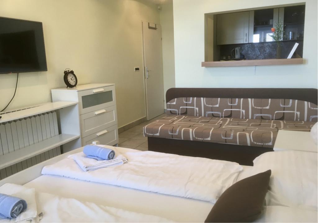 Apartmán je úhledný, čistý a vkusně zařízený a dobře vybavený. K dispozici jsou lehátka, slunečníky, prkna, kola, dětský koutek... Kromě lokality (první řada u moře) jsme nadšeni z velmi přátelské hostitelky Branky, která je hostům neustále k dispozici. Nenápadná, veselá, dobře míněná a vřelá paní Branka může být pro všechny nájemníky příkladem, jaký by měl být dobrý hostitel. Doporučujeme všem, mladým i starým, i rodinám s dětmi. Snídaně v ceně je pestrá a vyhovuje každému chuti.