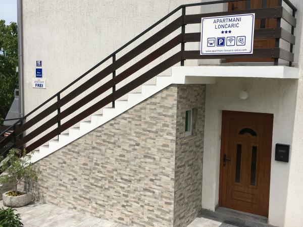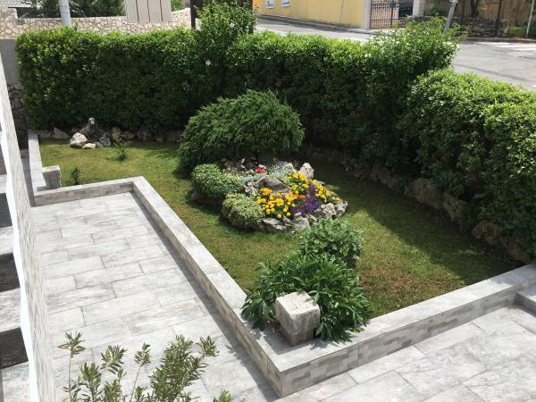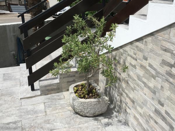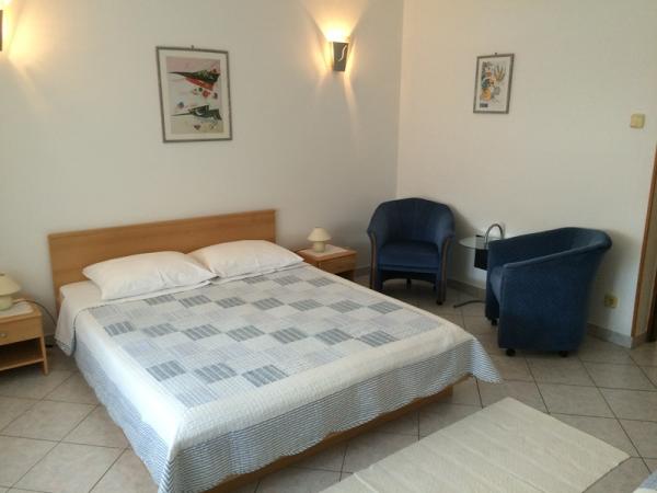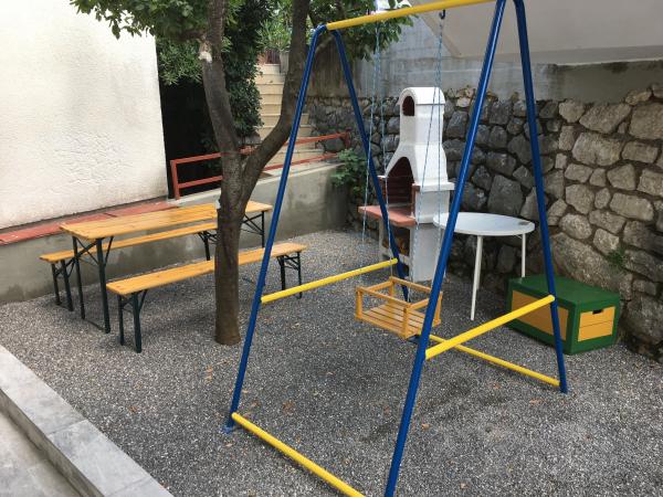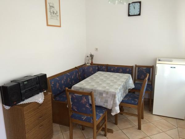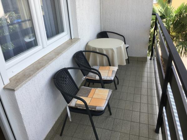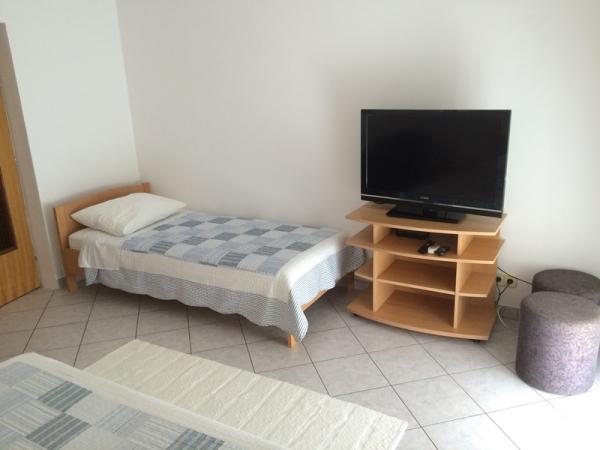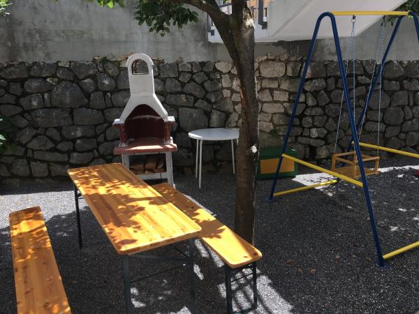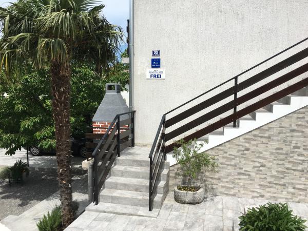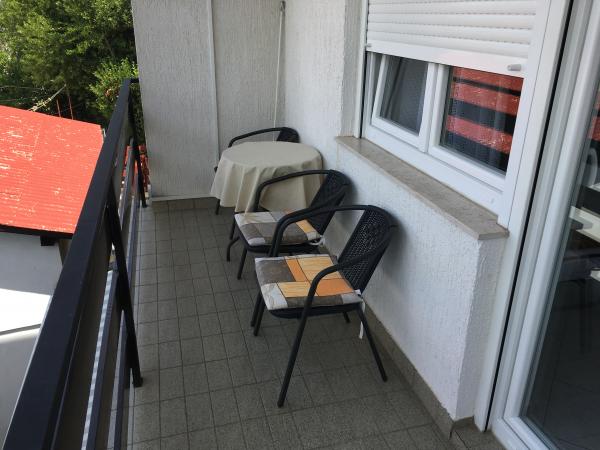 Apartmány se nacházejí v rodinném domě v prvním patře. Každý apartmán má samostatný vchod, balkon a parkování před domem. Ve dvoře za domem je k dispozici houpačka a skluzavka pro děti. Apartmány se skládají z ložnice se třemi lůžky (dětská postýlka nebo přistýlka), plně vybavenou kuchyň s jídelním koutem, koupelna s WC. Apartmány jsou vybaveny klimatizací a TV se satelitním příjmem, a tam je bezplatné používání internetu.