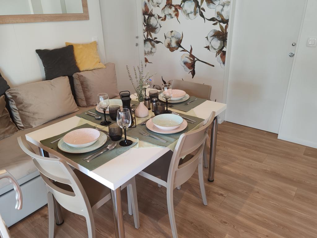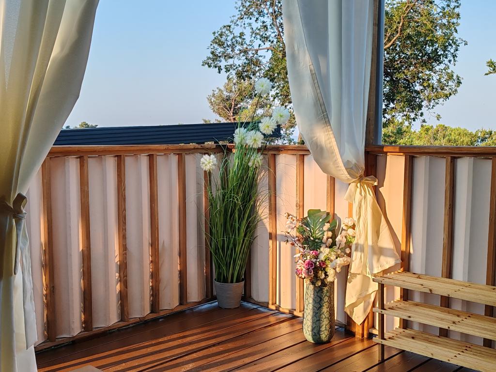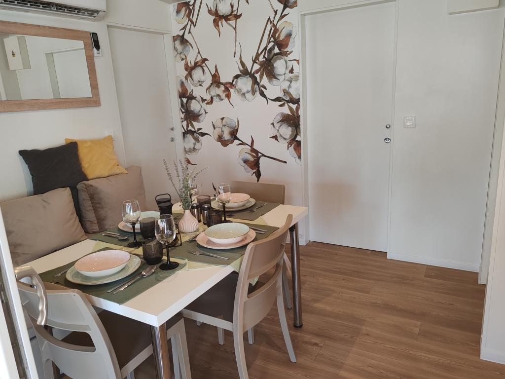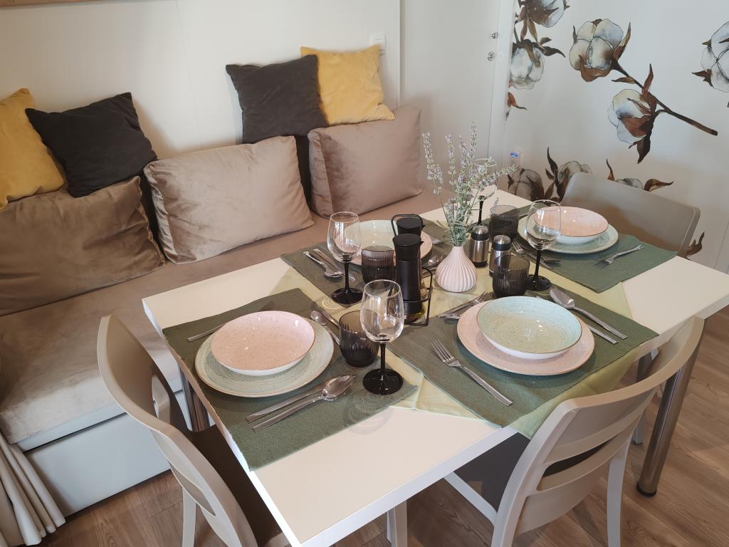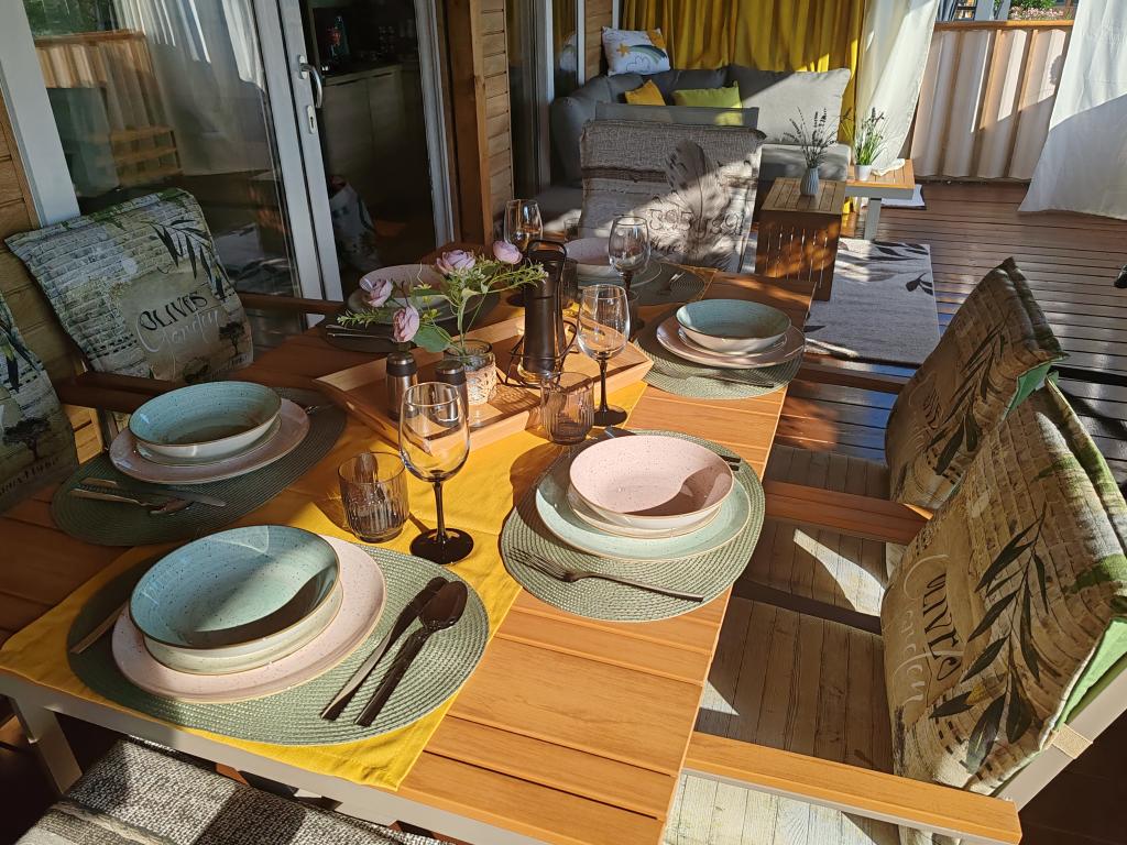 Krásný mobilní dům, ve kterém se budete cítit jako doma, protože má kvalitní vybavení, od postelí až po kuchyň a krásnou terasu, který nabízí úplnou anonymitu. Přátelští majitelé také poskytli příjemné přivítání.