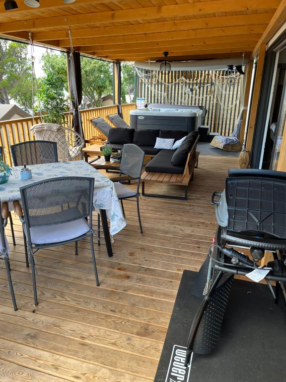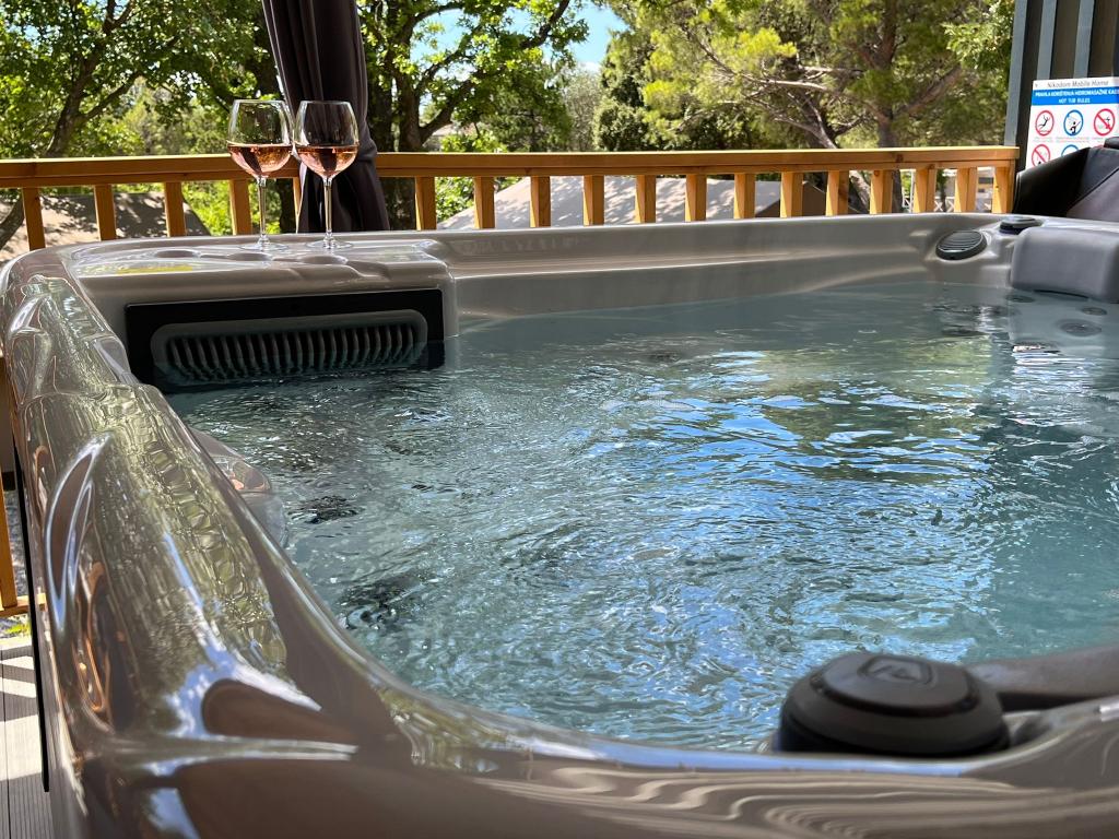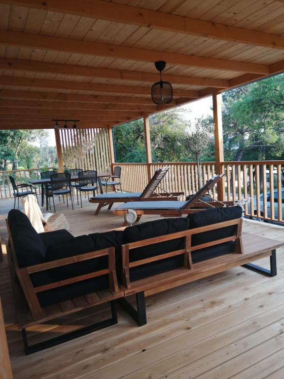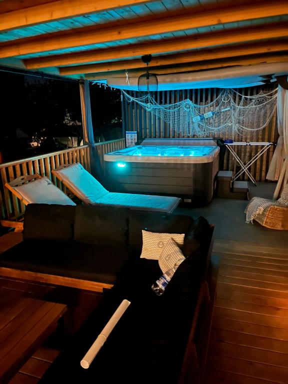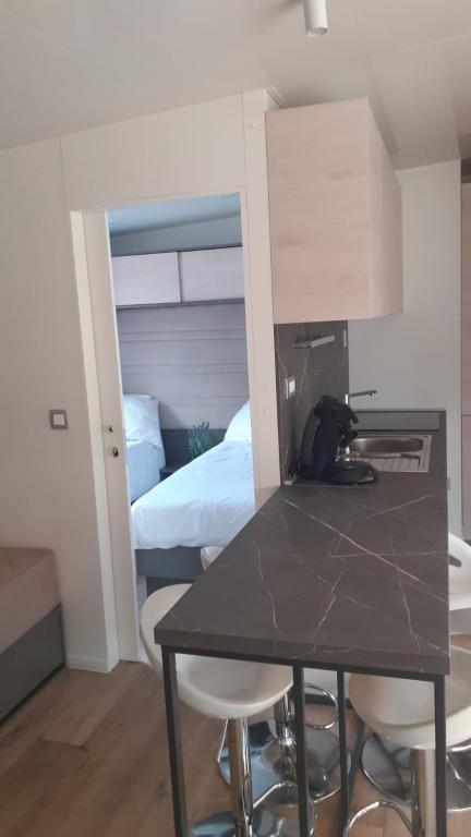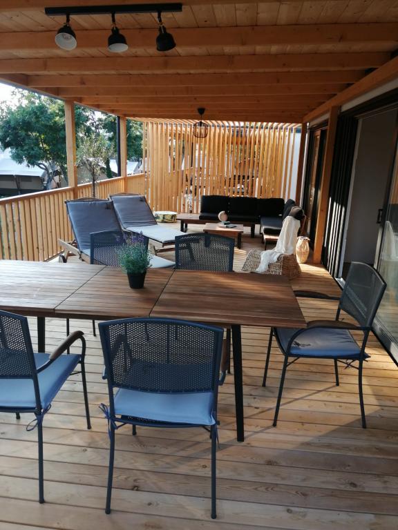 Máte chuť na něco jiného? Chcete si odpočinout v prostředí přírody a klidu? Někde mezi nebem a mořem je náš nový mobilní dům. Přesněji řečeno, nachází se v kempu Elements v klidné části Selce a je ideální pro dovolenou pro každého. Na prostorném pozemku v bezprostřední blízkosti moře, přesně 120 metrů! V tichu nedotčené přírody jsme dům umístili tak, aby vypadal jako jeviště pro krásné moře, slunce a ostrov Krk. Dům je obklopen přírodou. Začněte den na terase se zvukem cvrčků a vůní moře. Na 45 m2 se nachází jídelní stůl a rohová sedací souprava k odpočinku a dvě pohodlná lehátka. Na straně terasy je vám k dispozici gril. Interiér domu nabízí vše, a tak vám nebude chybět pohodlí a relax ve středomořském stylu. Dvě ložnice, koupelny, plně vybavená kuchyň, klimatizace, internet, TV. Ideální až pro 6 osob! Zavřete oči a představte si... jste na krásném místě obklopeném jasnými vodami Jadranu. Hodujte s námi a odpočiňte své duši i tělu.