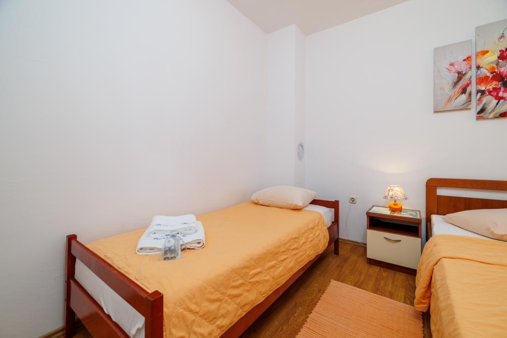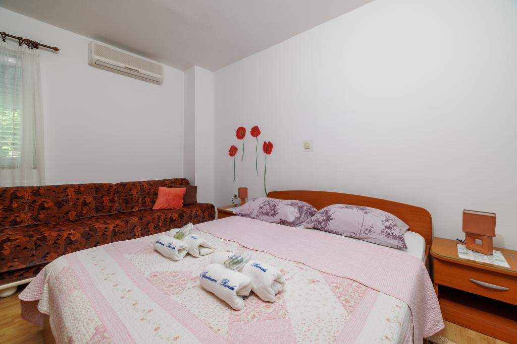 Komfortní pokoje, součástí pokoje je koupelna, balkon, lednička. To se nachází ve velmi klidné části města a pouhých 5 minut od pláže. Je klimatizovaný, a parkoviště pro vozidla. Na zahradě je gril a stůl se židlemi, takže je to možné a večeřet. Mario a jeho rodina jsou velmi servis a jsou vždy tam odpovědět na Vaše dotazy. Děkujeme vám za vaši krátké, ale krásné místnosti. Tina a Tom