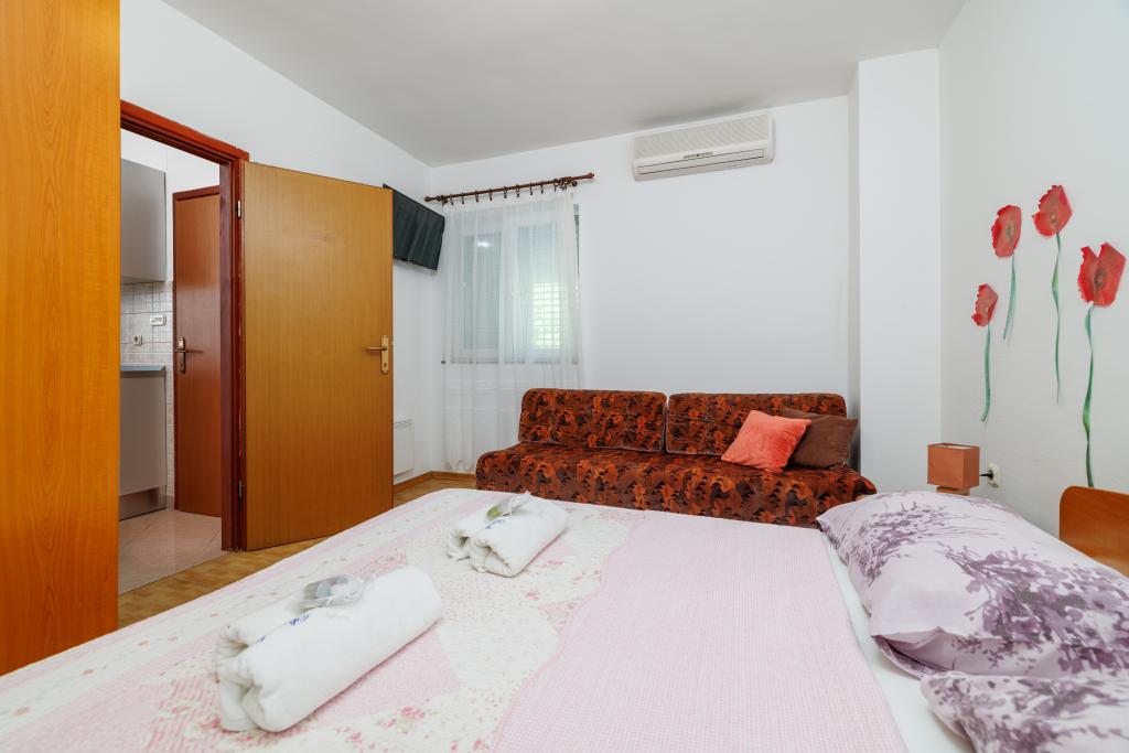 Velmi elegantní ubytování (pokoje s vlastním sociálním zařízením), s velkým parkovištěm před domem, který se nachází ve velmi klidné části města. Minus je, že je to trochu těžší najít (žádné názvy ulic a GPS nemůže najít, Dolac Street) a úzké boční ulice a zaparkovaných aut na ni, a ona stále úzký. Velmi příjemný hostitel Mario přišel pro nás nebude bloudit, a šetříme čas. Tímto ještě jednou budeme zahvaljuemo rodinný Biondić na nádherné dovolené. Doporučení pro každého, kdo se chce probudit zpěvem ptáků a vůně přírody. Na shledanou ..