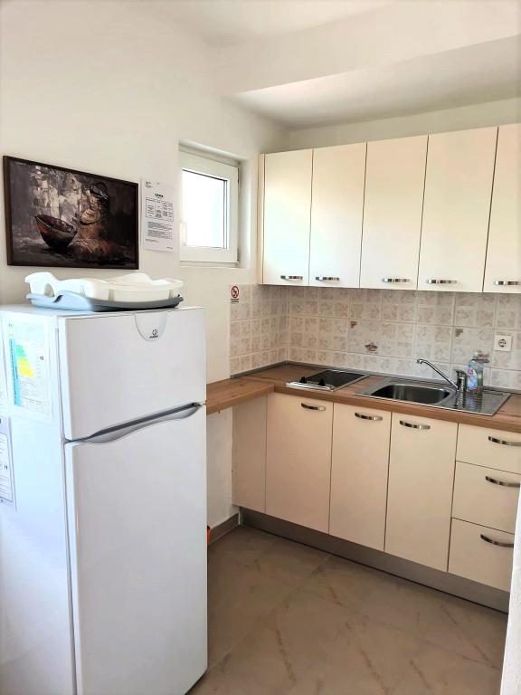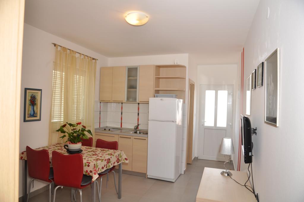 Rodinný dům se 4 apartmány, 50m od moře. Všechny apartmány jsou plně vybaveny; kuchyně, ložnice, koupelna, obývací pokoj, klimatizace, SAT TV a WiFi. Každý byt má samostatný vchod a naprosté soukromí, stejně jako parkovací stání u samotného objektu.