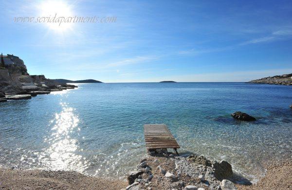 Pláž dům se dvěma byty na nábřeží, 10 m oblázky pláže. Byt v přízemí (4 +1) a jeden byt (2 +2), v prvním patře s nádherným výhledem na moře, pláže a ostrovy. Poskytují klidnou dovolenou v Sevid - Trogir Riviera, se těší krásu slunečné zátoky a křišťálově čisté vody, se téměř skryté části chorvatského pobřeží.