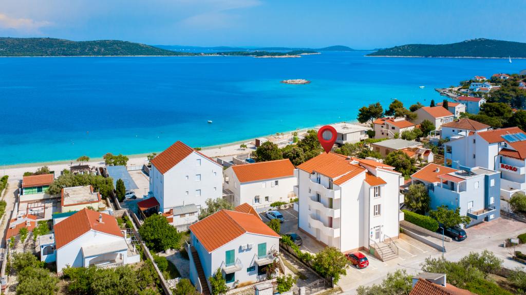 Pohodlné a plně vybavené apartmány s výhledem na moře. Zařízení se nachází v klidném prostředí, 50 m od moře a obchodů.