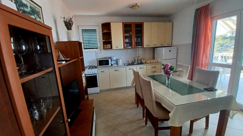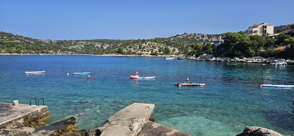 Dovolená, kde vás moře provází každým okamžikem vašeho pobytu. Nádherný výhled na klidnou zátoku zve k osvěžení v moři. Majitelé se ujistili, že pláž je také krásně zdobená. Důkladně vyčištěný, kompletně zrekonstruovaný byt nabízí vše potřebné pro domácnost. Milí majitelé se také postarají o všechny informace, které během svého pobytu potřebujete. Wifi, klimatizace, TV, kryté parkoviště chráněné plotem, to vše abyste prožili dovolenou bez stresu.