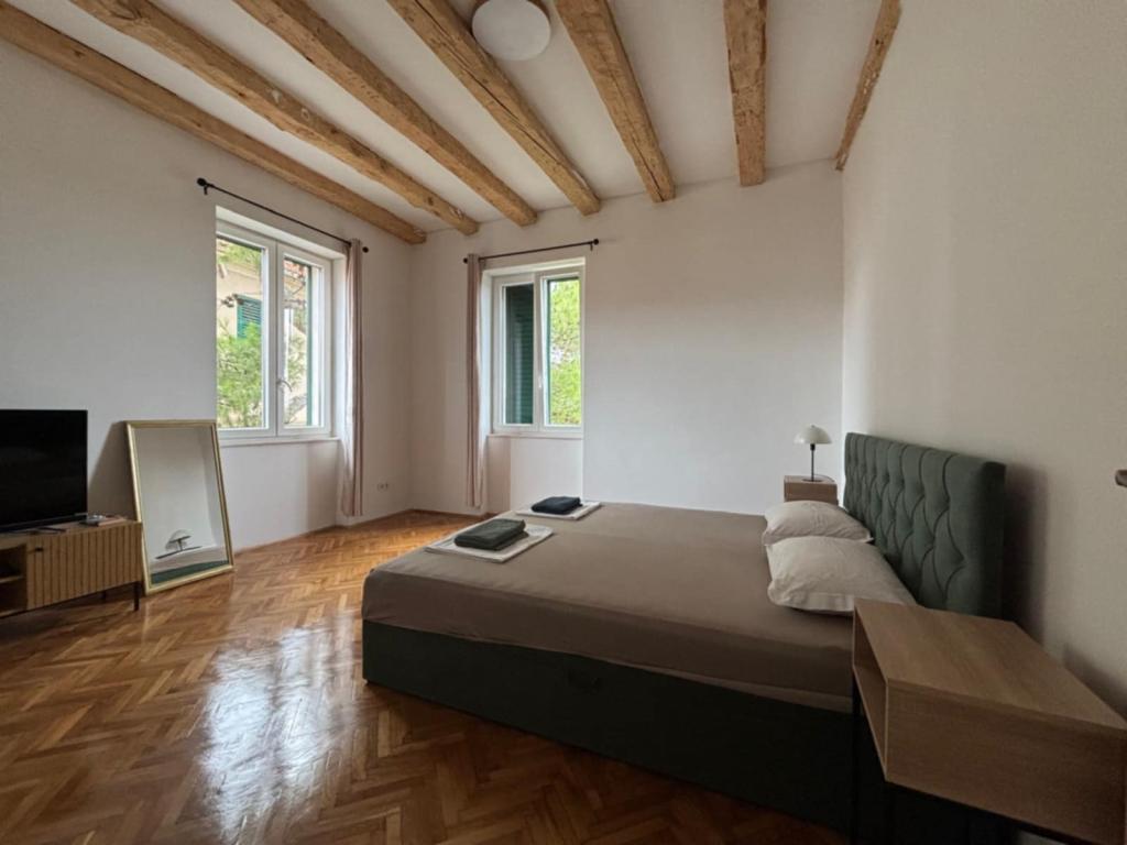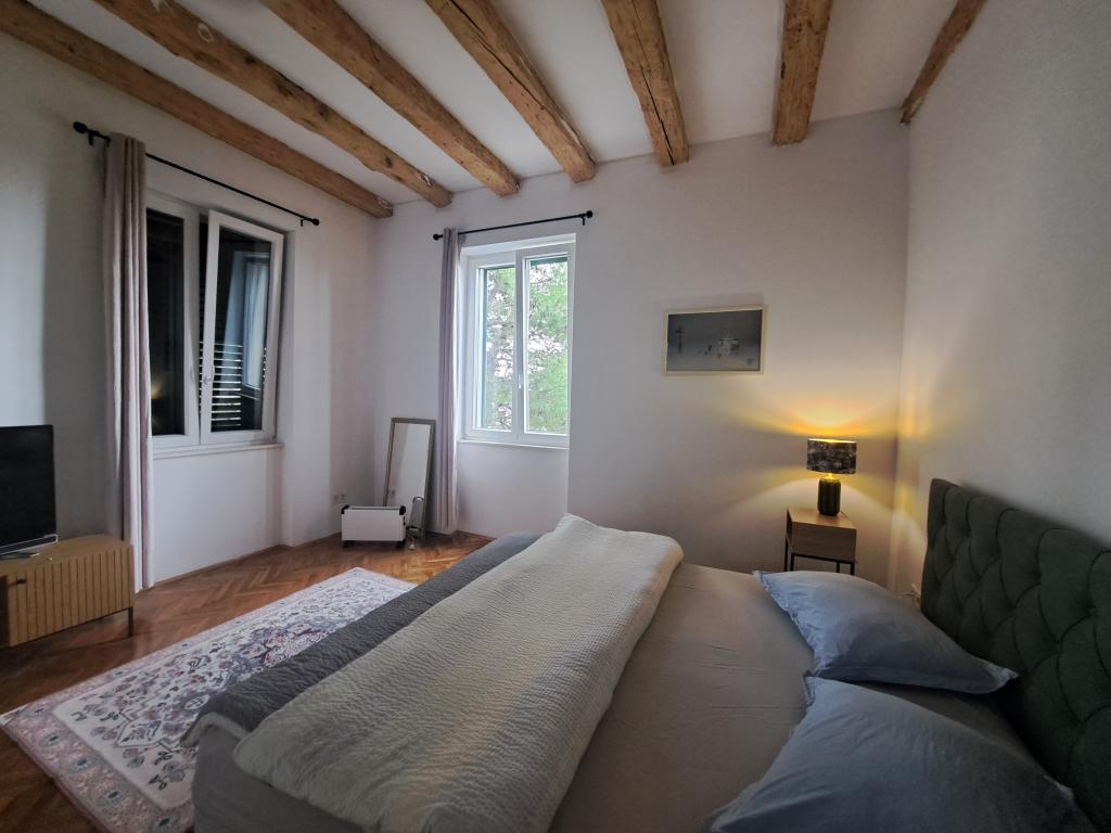 Vítejte v apartmánu Spas! Po ulici sv. Spasy, která vede kolem kostela sv. Spasy, se za pár minut pěšky dostanete do centra města. Před horkým středomořským sluncem vás ochrání stín staletých cypřišů, pittospor a borovic, které zdobí ulici a zahradu před ubytováním. V zahradě si můžete grilovat a relaxovat na lehátkách a lavičkách. Apartmán se nachází ve druhém patře s výhledem na Šibenický záliv a pevnost sv. Michala, která je vzdálena jen deset minut chůze. K dispozici jsou dvě ložnice s manželskými postelemi, obývací pokoj s rozkládací pohovkou, plně vybavená kuchyň, koupelna se sprchou a prostorný balkon, kde si můžete vychutnat ranní rutinu s štěbetáním ptáků nebo výhledem na kouzelné západy slunce. Spas najdete v klidné slepé ulici, která je v blízkosti veškeré občanské vybavenosti, ale zároveň se zdá být kilometry daleko od ruchu města. V blízkosti ubytování je k dispozici soukromé parkovací místo.