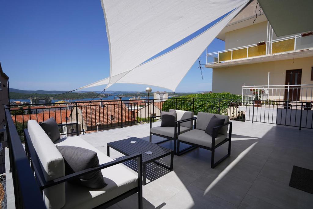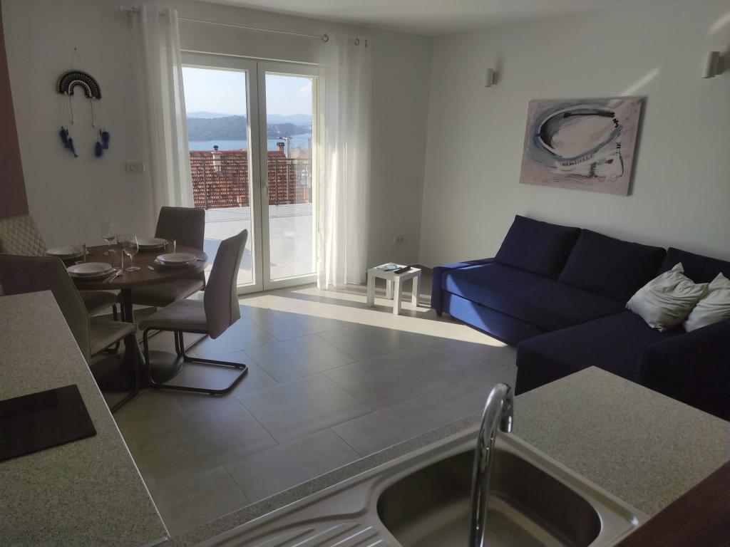 Byt v klidné části města Šibenik Byt se nachází 10 minut chůze od Starého Města Šibenik a v bezprostřední blízkosti veškeré městské občanské vybavenosti. K moři je to 500 metrů a na nejbližší pláže dojedete autem za pouhých 5 minut. Byt je plně zařízený a vybavený veškerým zařízením a má přístup na terasu s krásným výhledem na záliv Šibenik a město.