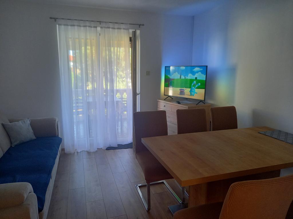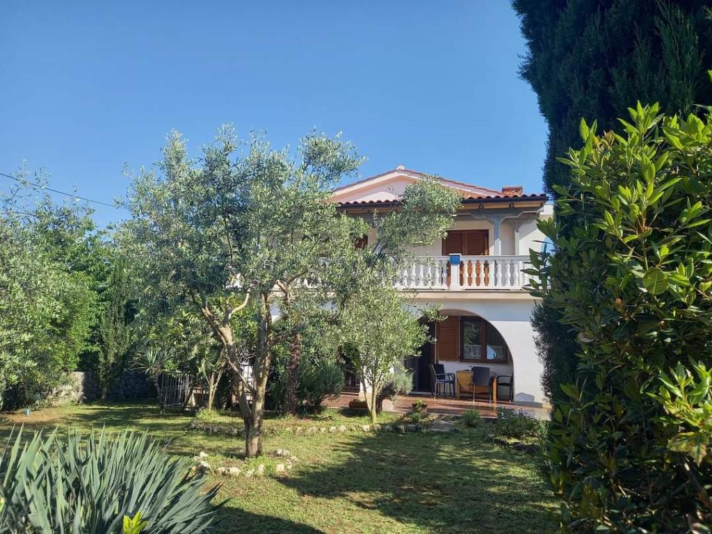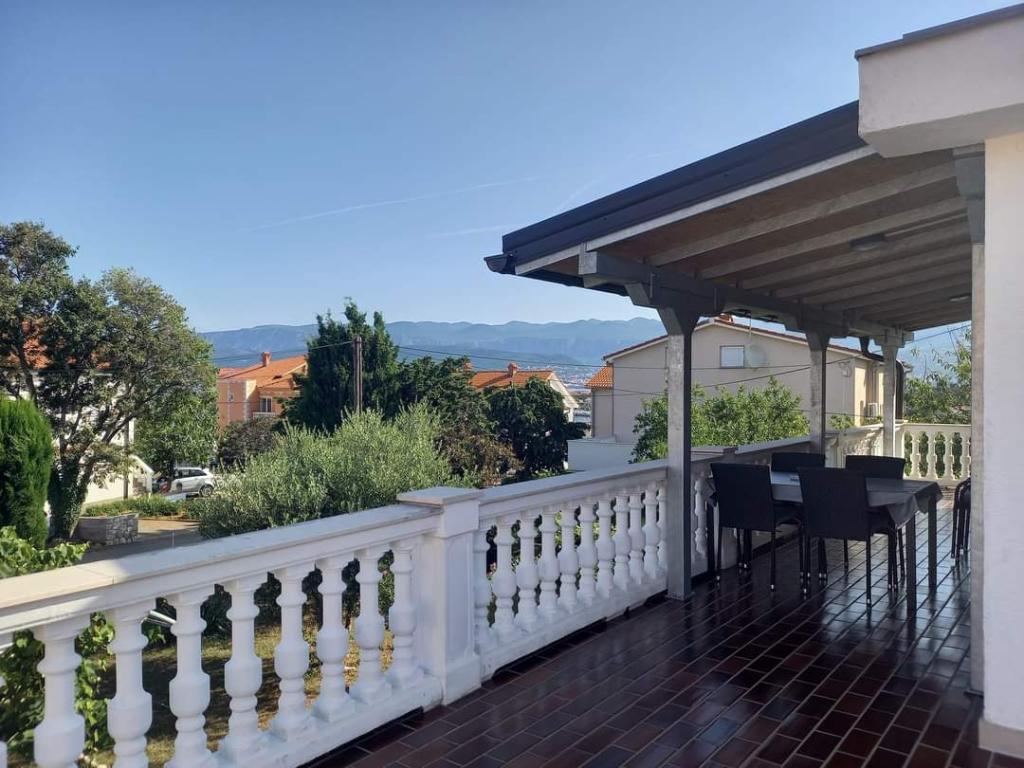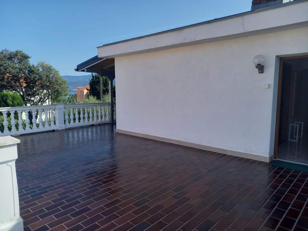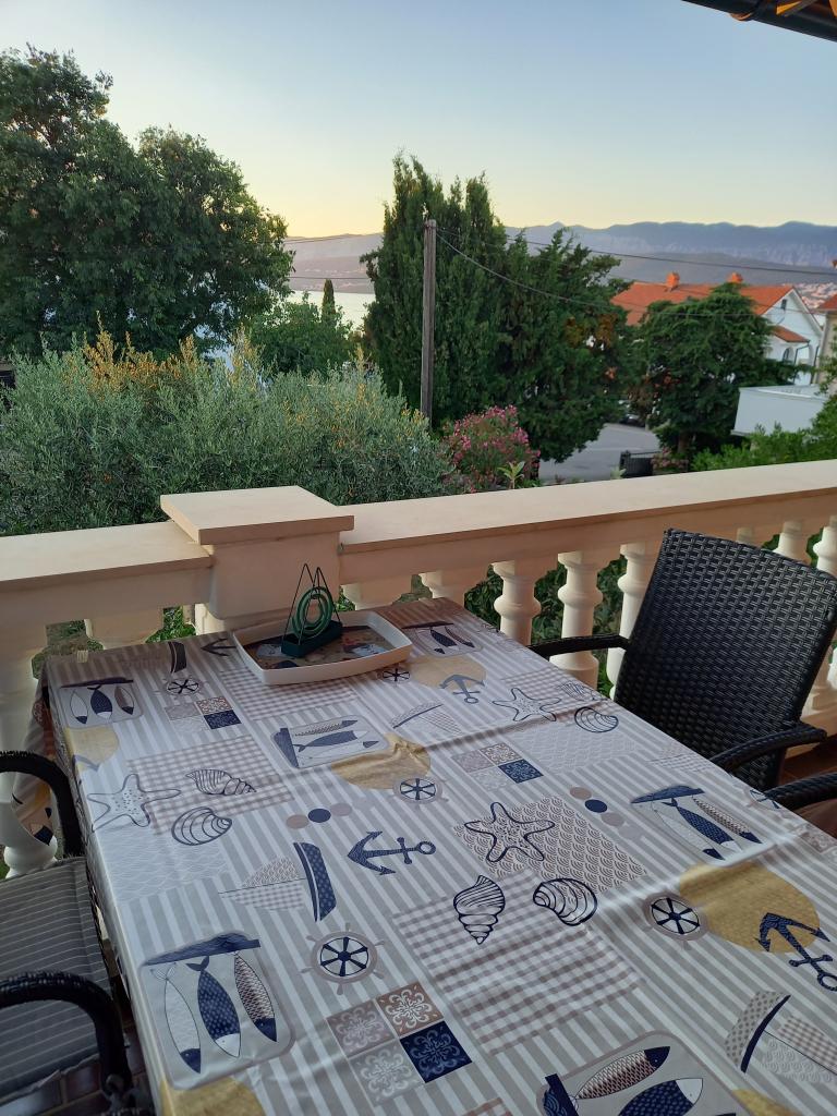 V krásném městečku Šilo plném zeleně na ostrově Krk se pronajímá apartmán o rozloze 80 metrů čtverečních v prvním patře rodinného rekreačního domu s prostornou terasou a výhledem na moře. Ubytování je kategorizováno pro 5+1 osob. Skládá se z jednoho třílůžkového pokoje, jednoho dvoulůžkového pokoje a jedné přistýlky. Vzdálenost od první pláže je 200 metrů, od písečné pláže 300 metrů a od centra města 200 metrů. Parkování je zajištěno v oploceném dvoře.