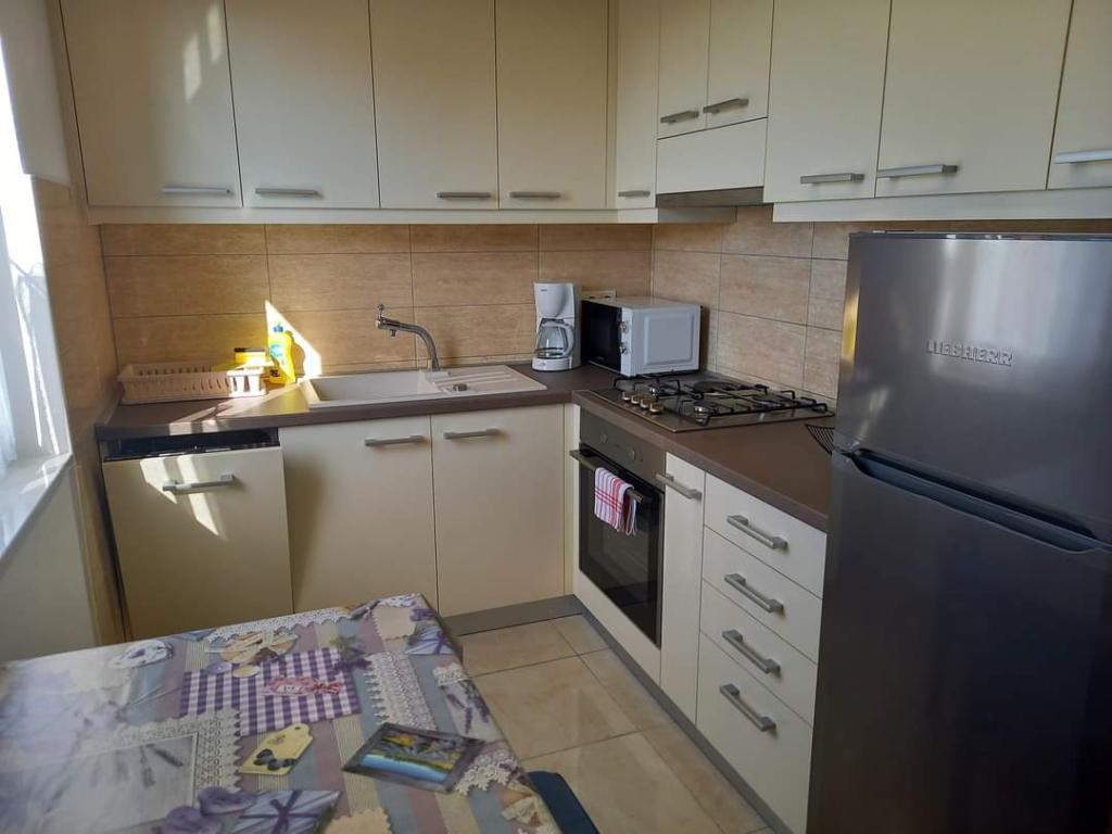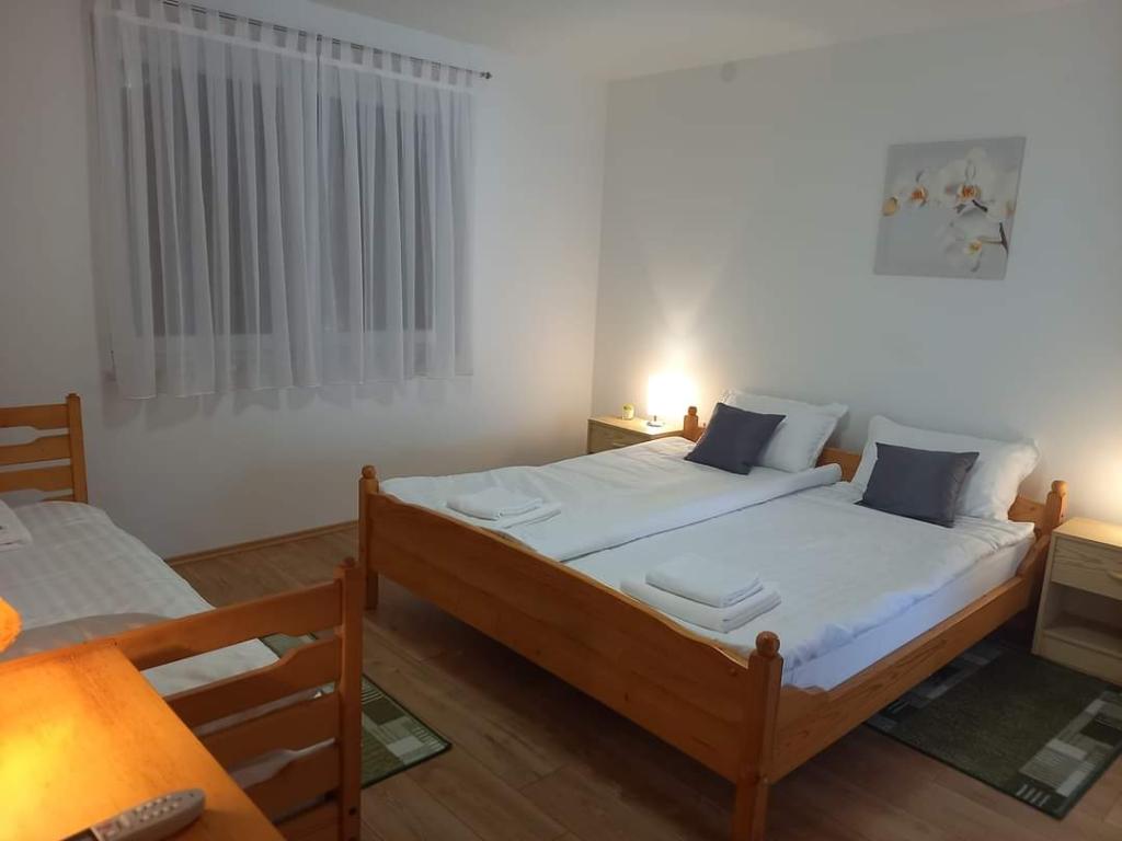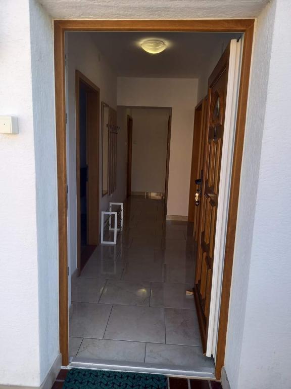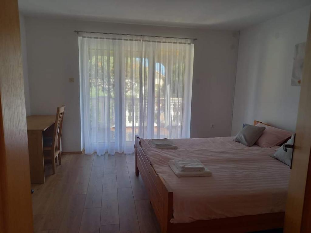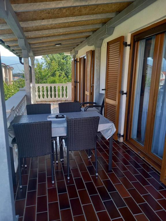 V krásném městečku Šilo plném zeleně na ostrově Krk se pronajímá apartmán o rozloze 80 metrů čtverečních v prvním patře rodinného rekreačního domu s prostornou terasou a výhledem na moře. Ubytování je kategorizováno pro 5+1 osob. Skládá se z jednoho třílůžkového pokoje, jednoho dvoulůžkového pokoje a jedné přistýlky. Vzdálenost od první pláže je 200 metrů, od písečné pláže 300 metrů a od centra města 200 metrů. Parkování je zajištěno v oploceném dvoře.