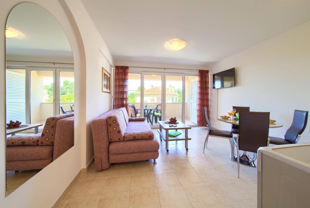 Naše apartmány se nacházejí v rodinném dvojdomku a nejsou daleko od centra Šila (asi 5 minut chůze). Apartmány jsou zcela nové, moderně zařízené, kategorizované čtyřmi hvězdičkami a vzdálené jen asi sto metrů od moře a písečné pláže, která je ideální pro děti. Každý apartmán má zajištěné parkovací místo.