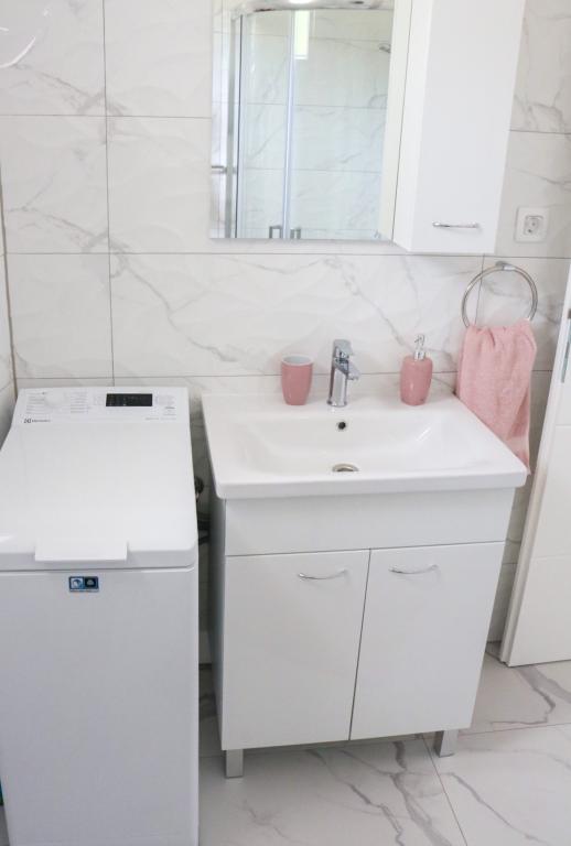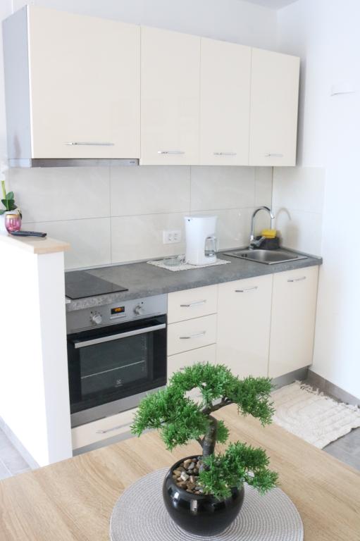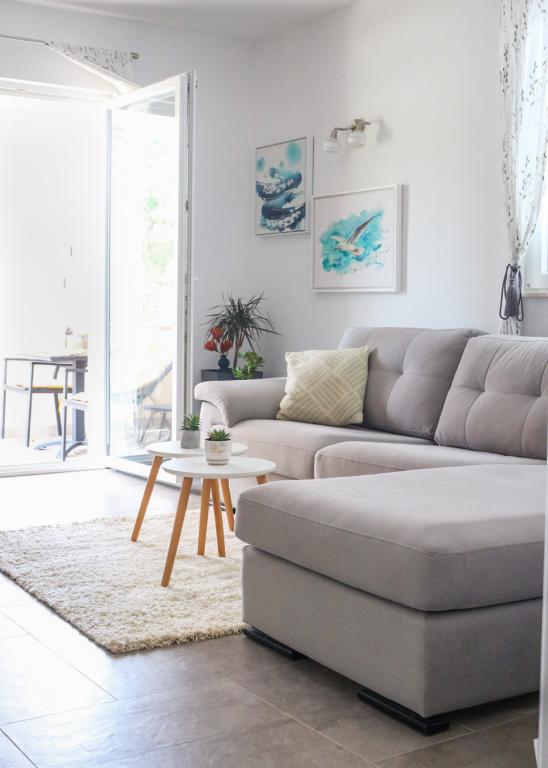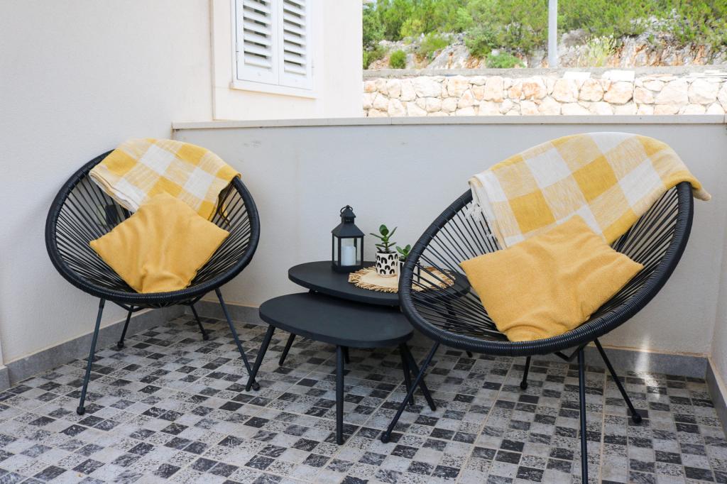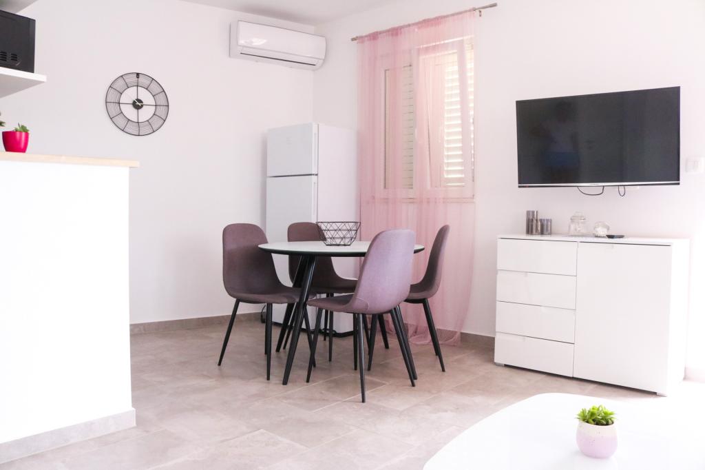 Plně vybavené apartmány dle nových podmínek kategorizace.Apartmány jsou moderně zařízené. Nachází se v klidné zátoce. Zařízení se nachází přímo u moře. Budova byla nově postavena v roce 2022. Do centra, které je vzdálené pouhé 4 kilometry, se dostanete autem, na kole, po dálnici nebo přes město Slađenovići.