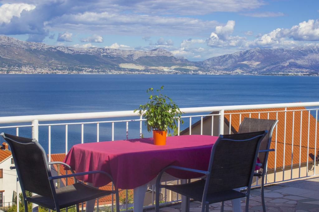 Apartmány Katarina se nacházejí na ostrově Čiovo, 5 km od Trogiru, u vchodu do Slatiny Ostrov Čiovo je spojen mostem s Trogirem a 30 minutovou lodní linkou do Splitu. Apartmány se nacházejí na klidném a slunném svahu od pláže 150m. Jsou obklopeny uzavřenou zahradou s olivovníky, vinnou révou a dalšími středomořskými bylinkami. Byt A6 1 má 72 m2, 3 ložnice, kuchyň s obývacím pokojem, 1 koupelnu a samostatné WC. Byt má dva prostorné balkony s výhledem na moře. Byt A2 2 má 43 m2, 1 ložnici, kuchyň s obývacím pokojem, terasu koupelny 40 m2 s panoramatickým výhledem na záliv Kaštela a Split. Parkování je zajištěno ve dvoře. Ve dvoře je gril, zahradní nábytek a společná zahradní sprcha. Možnost použití pračky.