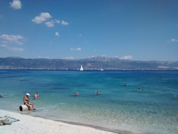 Vynikající byt se vším potřebným pro rodinnou dovolenou s balkonem s výhledem na moře. Perfektní pláž 2 minuty chůze s mnoha aktivitami. V blízkosti velkých měst, vyhlídkové jízdy - Split a Trogir. A velmi příjemný hostitel, který se stará o své hosty. Velmi doporučuji.