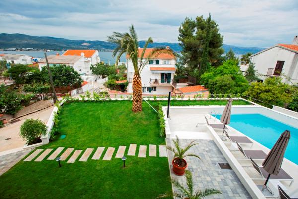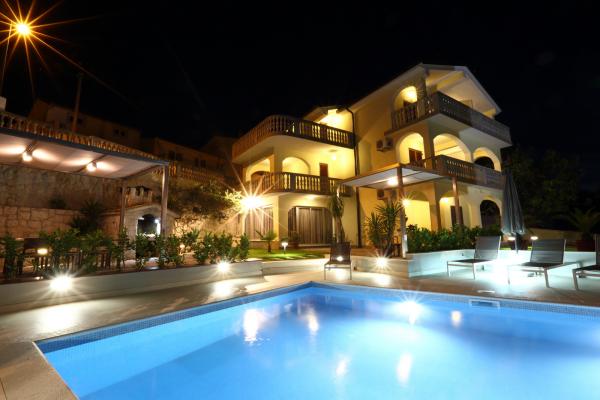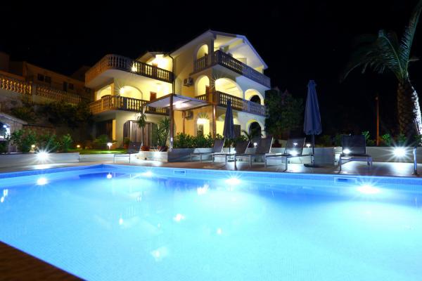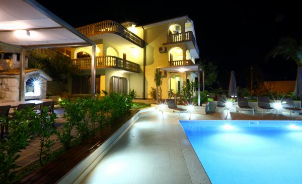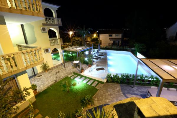 Dům se nachází 90 metrů od moře, v klidné části Slatina. K dispozici je bazén, gril pro všechny hosty, internet zdarma a parkovacími místy. Každý apartmán má výhled na moře a dvě terasy, kde si můžete odpočinout a užít si dovolenou. Všechny apartmány jsou klimatizované a dobře vybavené.
