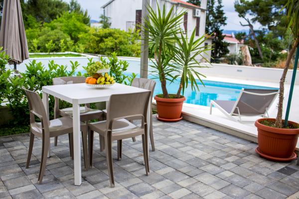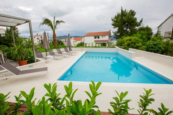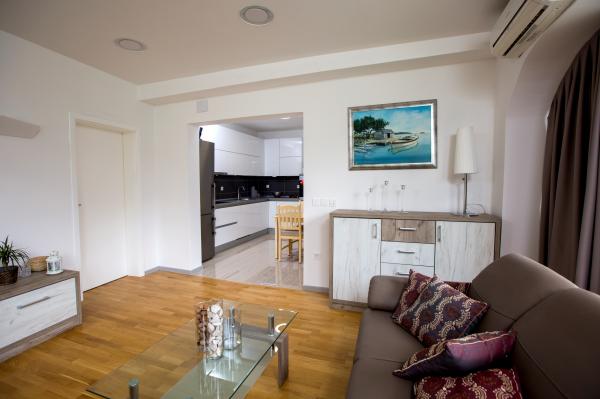 Pobytová taxa je v ceně.Byt a budova jsou moderní, kvalitní, dobře udržované a především čisté. Byt je velmi pohodlný a prostorný, ideální pro rodinu. Výhled z balkonu na moře je fantastický. Bazén v upravené zahradě je velmi čistý a zve vás k relaxaci. Majitel je nesmírně nápomocný, nemůžeme mu za tak příjemný pobyt dost poděkovat. Skvělá poloha pro objevování centrálního dalmatského pobřeží.